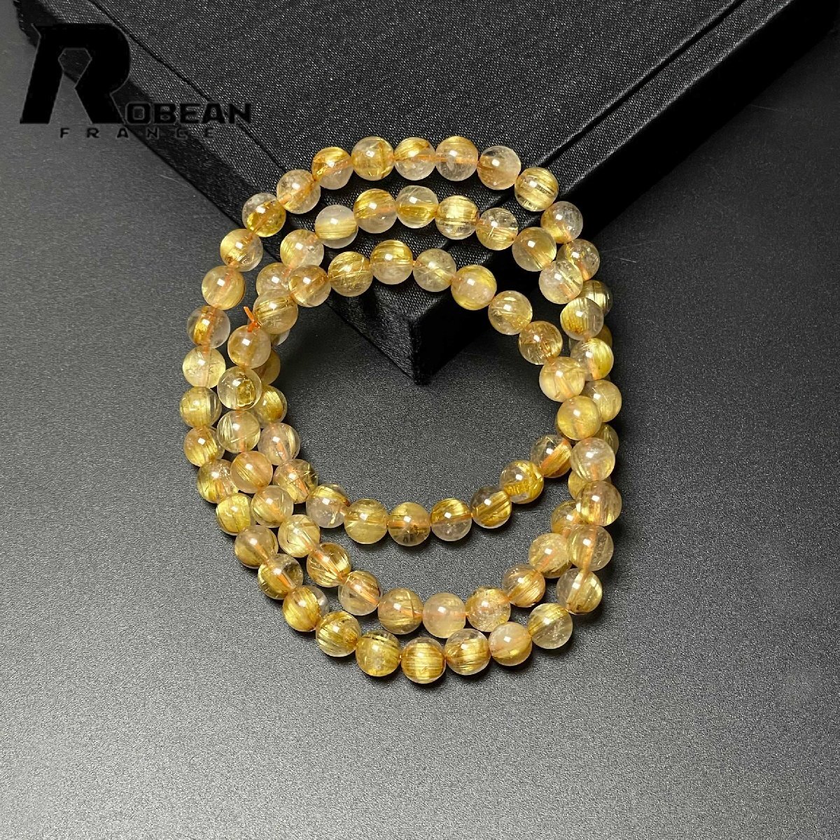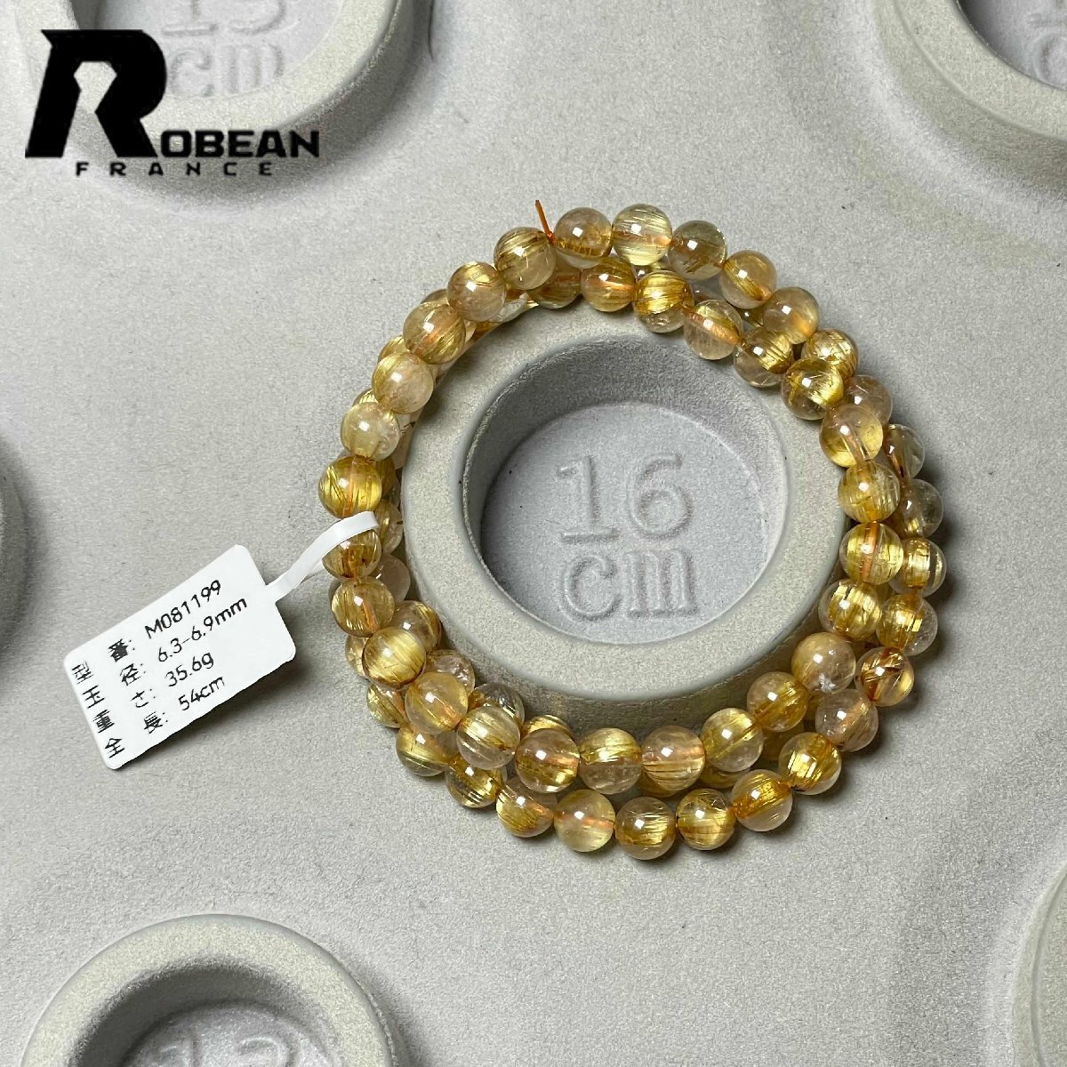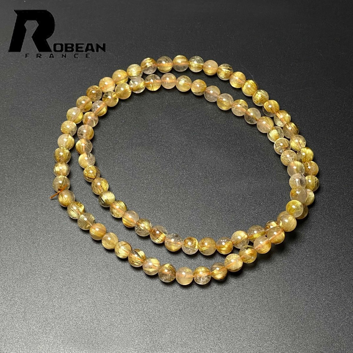 希少 EU製 定価13万円★ROBEAN・タイチンルチル★黄金針水晶 ゴールド 金運 開運 3本巻きブレスレット パワーストーン 6.3-6.9mm