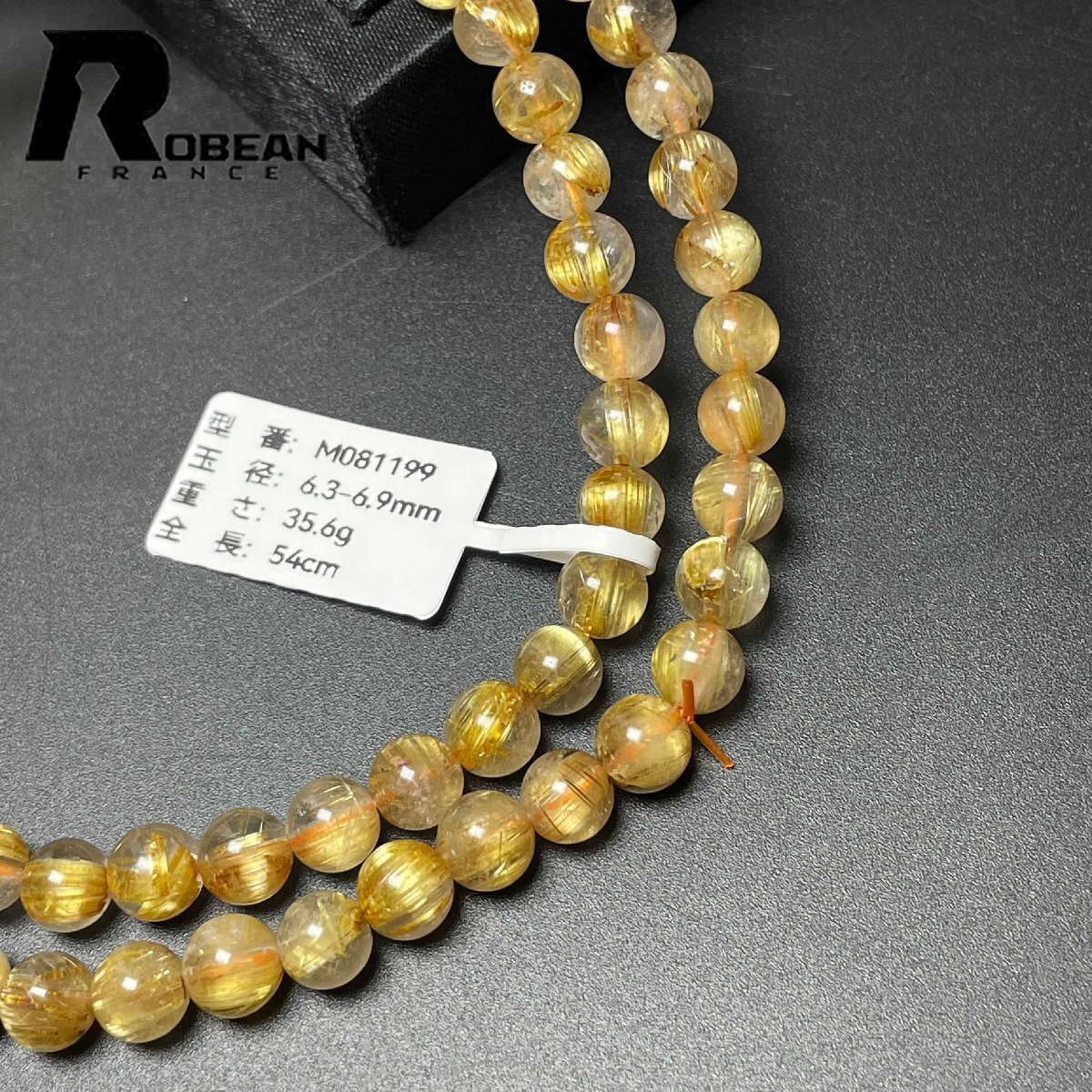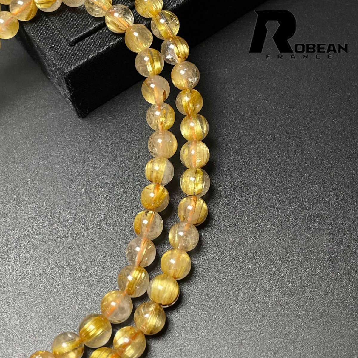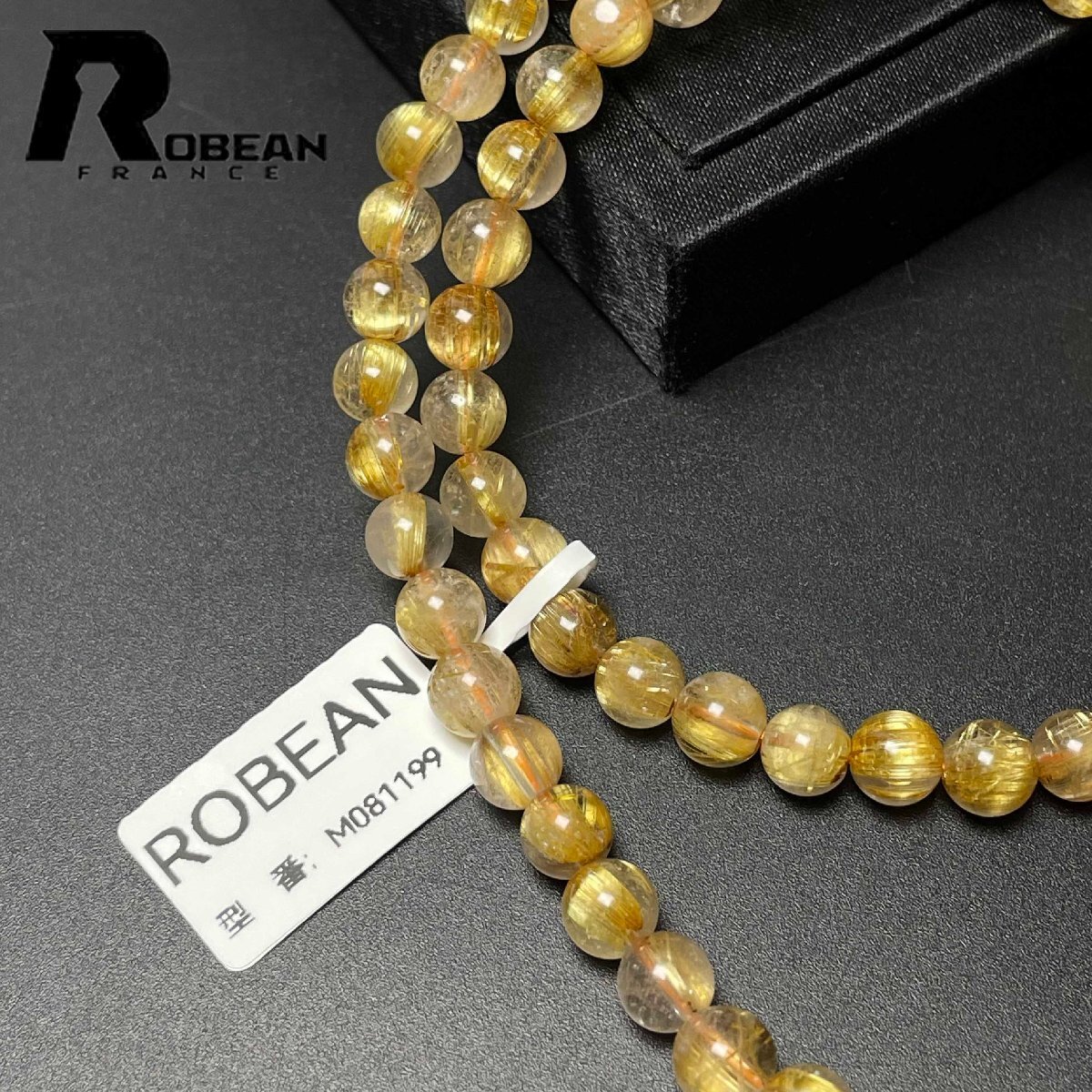 希少 EU製 定価13万円★ROBEAN・タイチンルチル★黄金針水晶 ゴールド 金運 開運 3本巻きブレスレット パワーストーン 6.3-6.9mm
