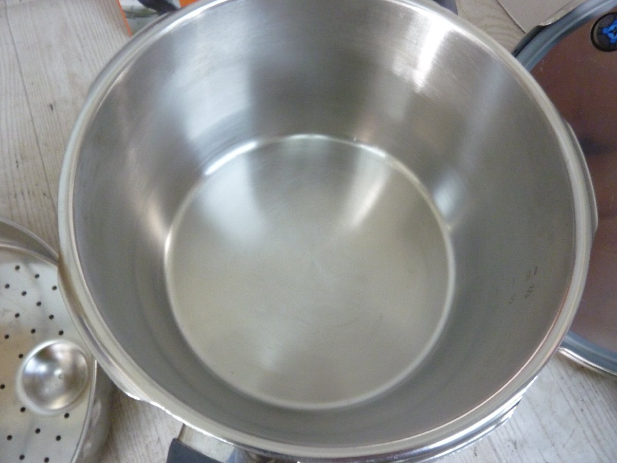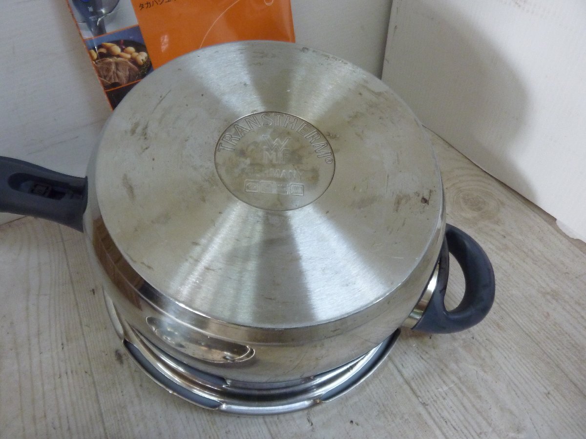 ★WMF 圧力鍋 4.5L 中古 レシピブックあり★ 4.5L<BR> 元箱と説明書はありませんがレシピブックあります。 中古の為使用時洗った時の細かい傷底面のガス使用時の汚れなどがあります。 現状売りとなります。 パッキンは綺麗な方のように思います。」 当社のオークションは返品・交換・キャンセル等は一切お断りさせて頂いております。充分ご検討の上ご入札下さいませ。 | |