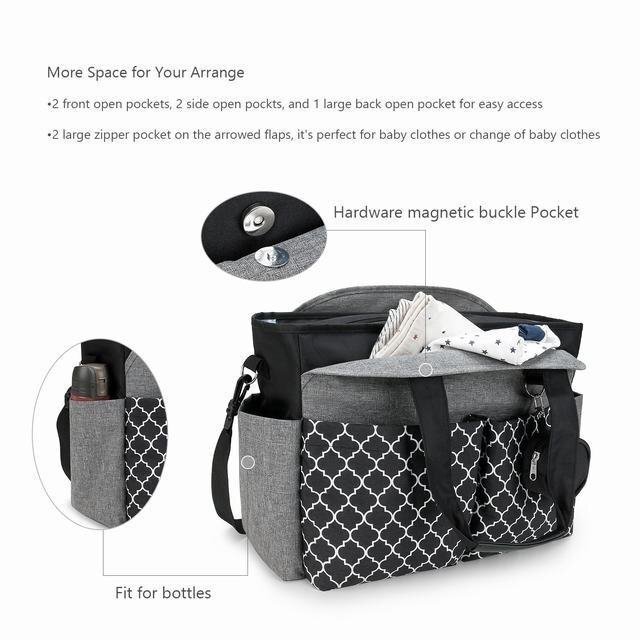マザーズバッグ トート ショルダー 3way リュック 手提げバッグ ナイロン 撥水 軽量 収納 ママ レディース ブラック&グレー