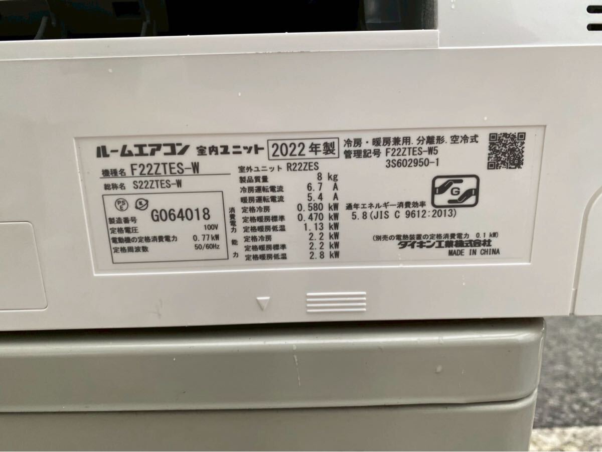 商品詳細 | ◯GW9487 ダイキン DAIKIN ルームエアコン 6畳 F22ZTES-W 22年製◯ |