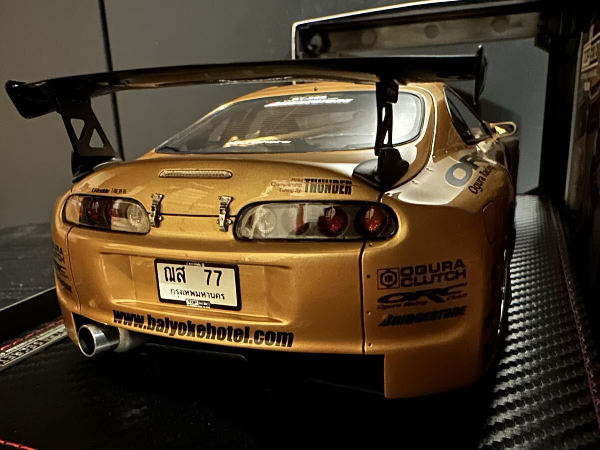 トップシークレットの「タイ」ブランチが所有するデモカー「TOP SECRET GT300Supra (A80) 」を1/18スケールレジンモデルで再現しました。VOLKRACING GT-C FACE1タイプ18インチホイールにローダウン仕様。