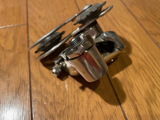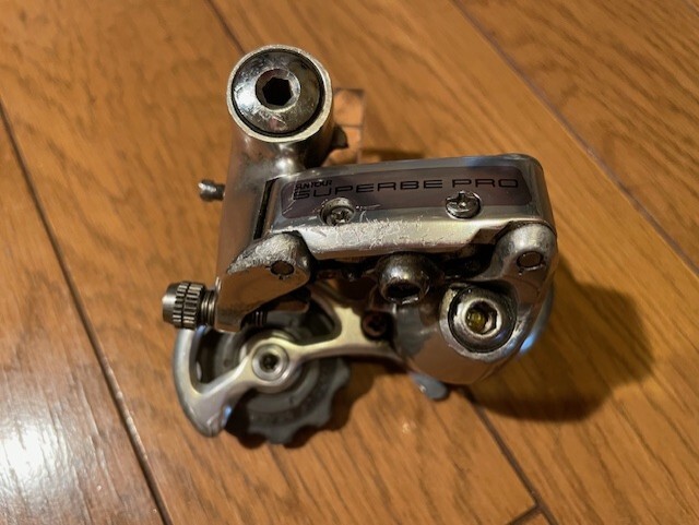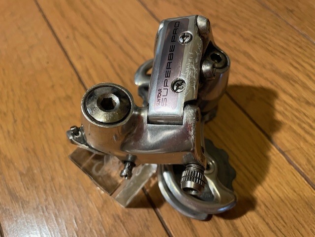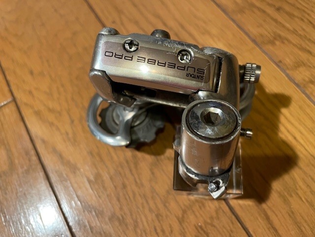 サンツアー シュパーブプロ リアメカ ジャンク品 です。ハンガー取り付けねじ部の淵が少し曲がっています。画像6。機能的に定かではありません。