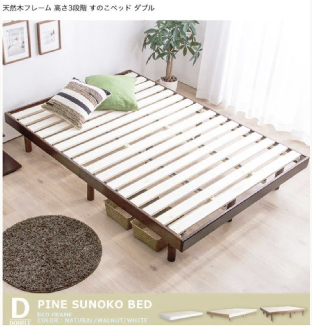 【無くなり次第終了】すのこベッド ベッド ダブル 敷布団 頑丈 シンプル ベッド 天然木フレーム ウォルナット