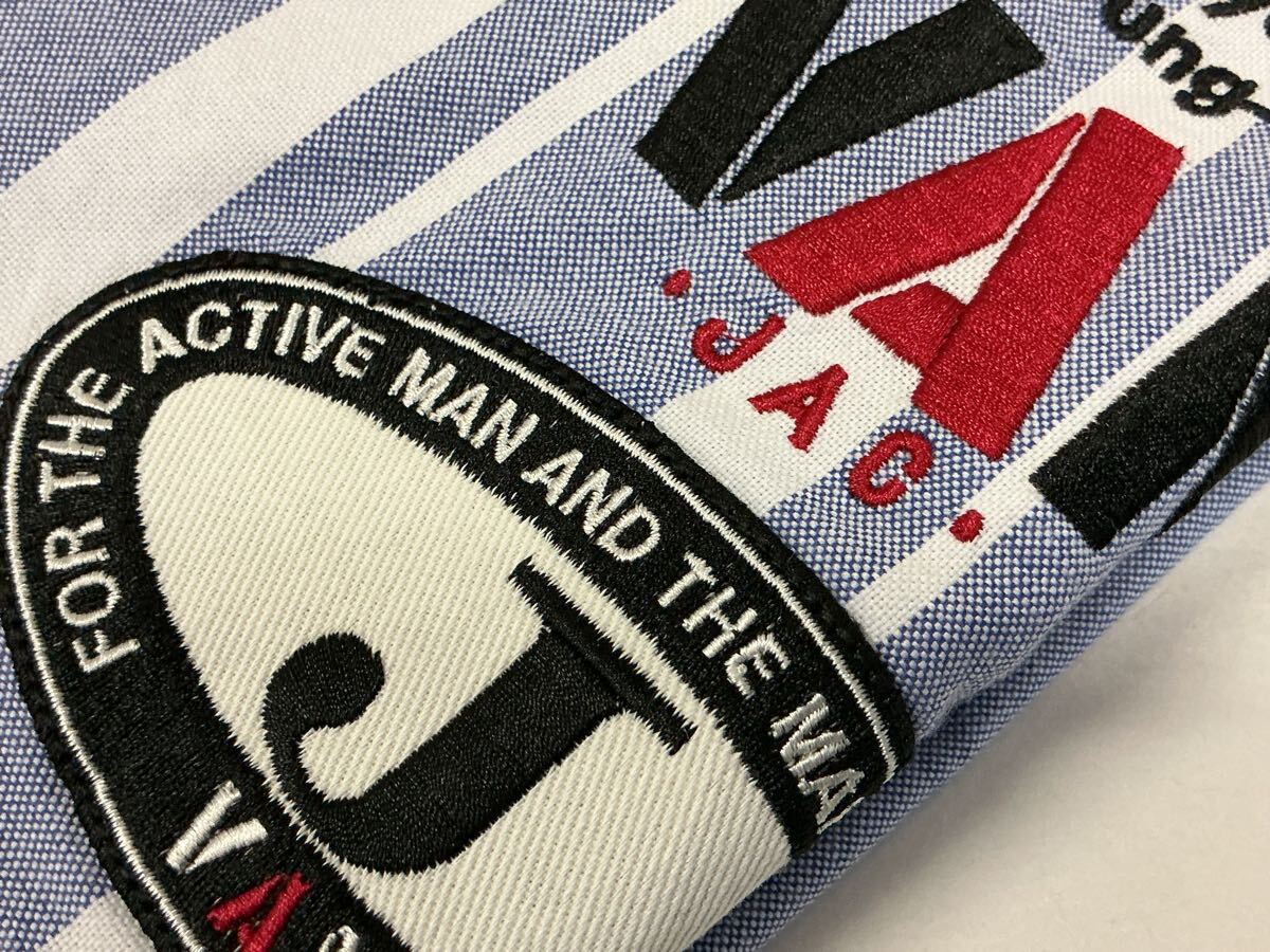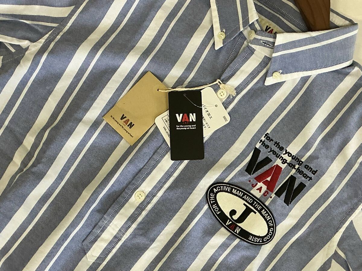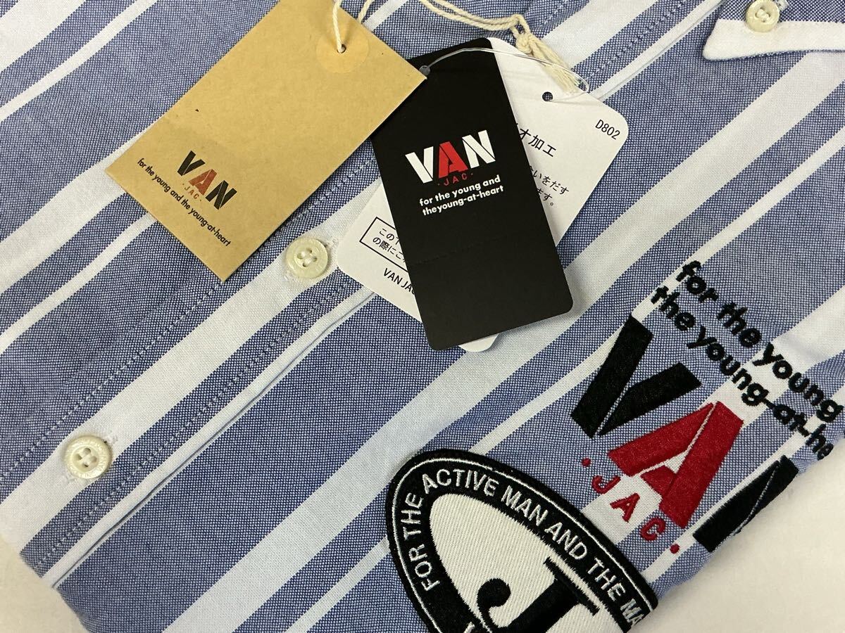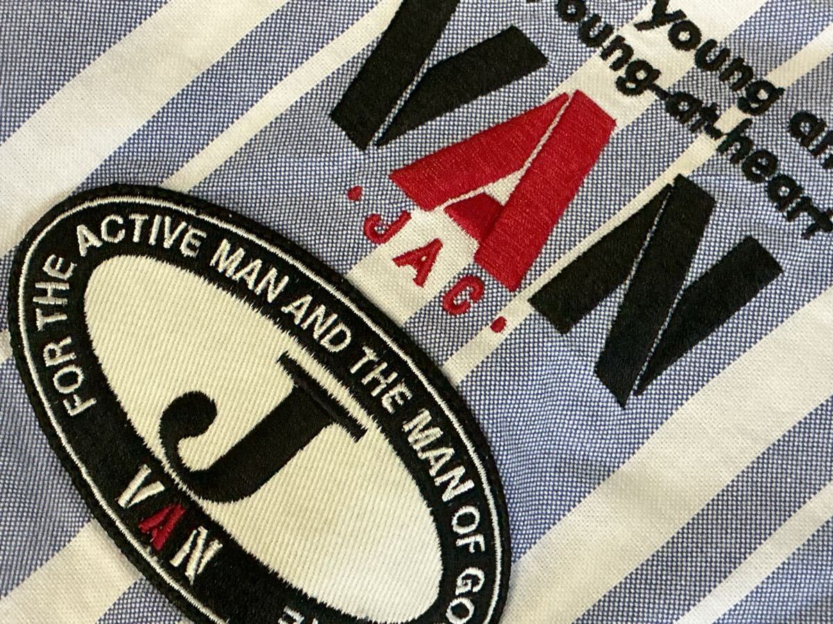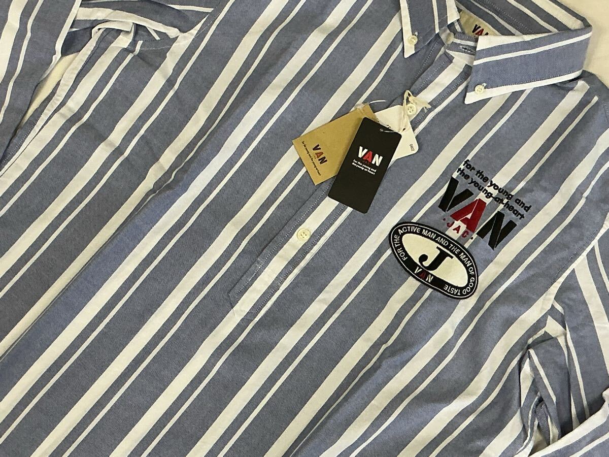 送料無料!VAN JACKET INC. ヴァンヂャケット プルオーバー長袖BDシャツの出品です。サイズ表示はLです。実寸は着丈約75cm 身幅約57cm 肩幅約47cm 袖丈約61cmです。素人による計測ですので多少の誤差はご容赦ください。素材は綿100%です。カラーは画像にてご確認ください。胸のところには刺繍とJマークワッペンが施されているプレミアムな逸品です。仕様はフロントがボタンダウン、バックはボックスプリーツ、アイビーループ、バックボタンなどバリバリのアイビーモデルシャツです。未使用新品タグ付きのデッドストックアイテムですのでNC NRでお願いいたします。送料無料で発送いたします!