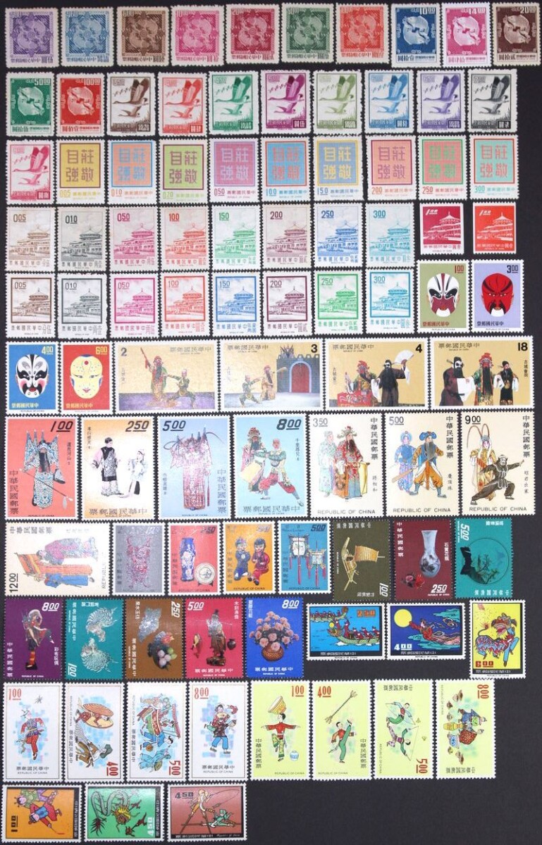 ● 商品・・・未使用 台湾切手 中華民国郵票 双鯉図郵票 一版 7種完 二版 5種完 飛雁図 9種完 京劇のくまどり 4種完 台湾の手工芸品 等