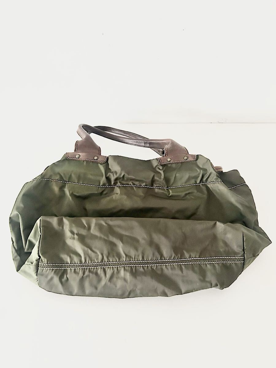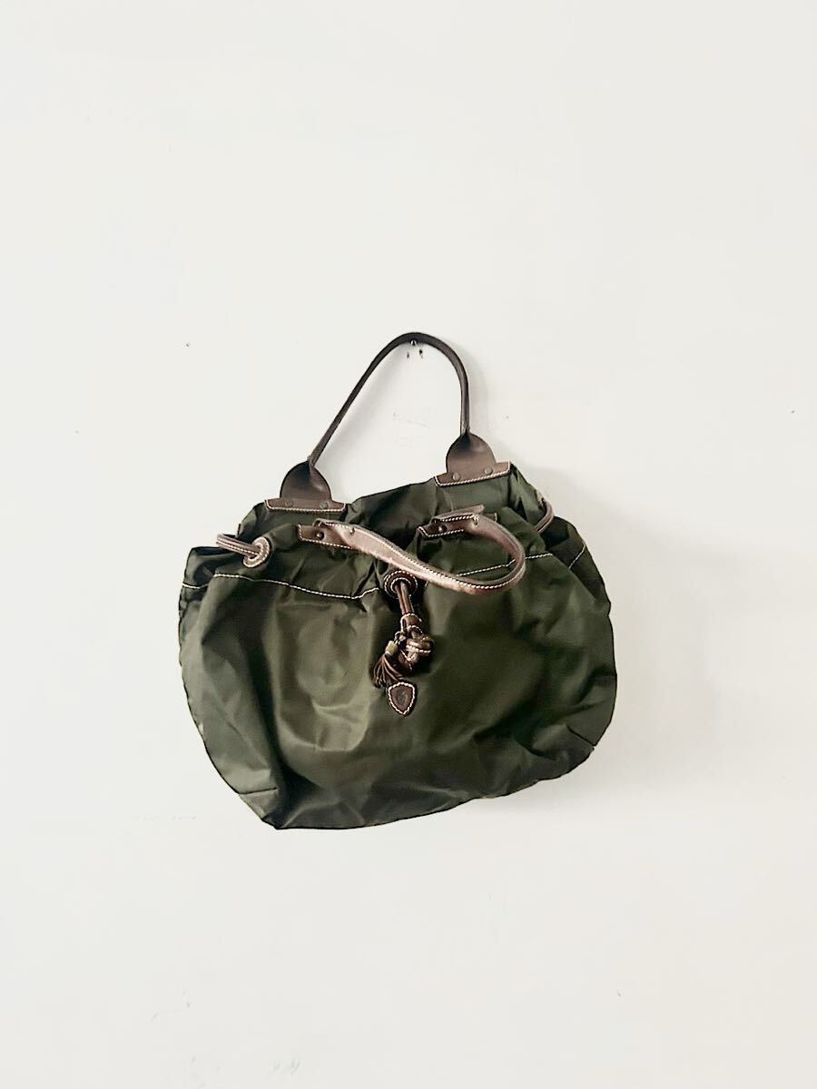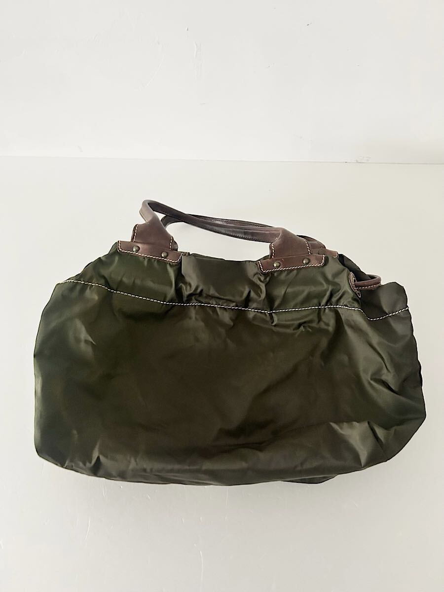 カラーはブラウンカーキでナイロン素材のバッグです。