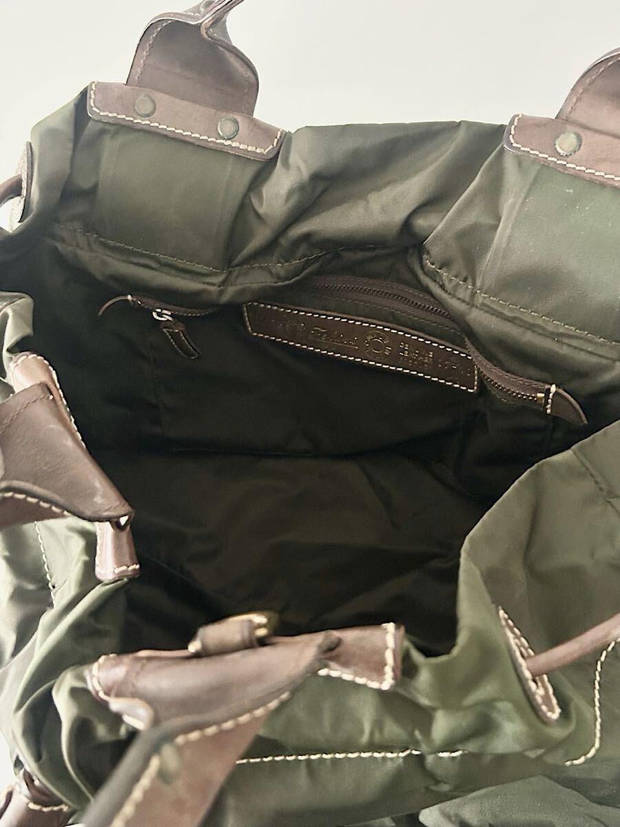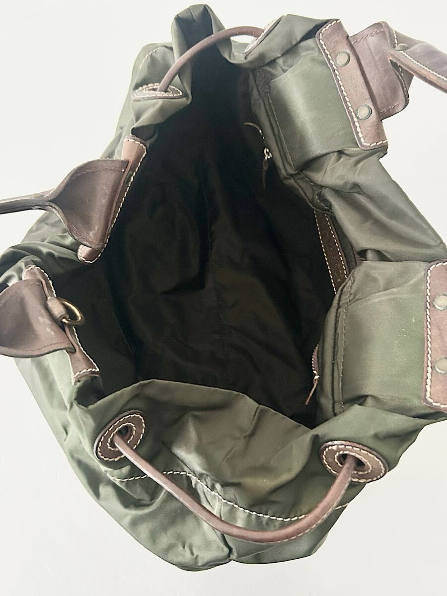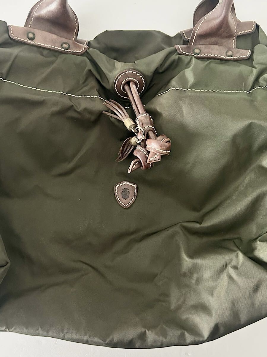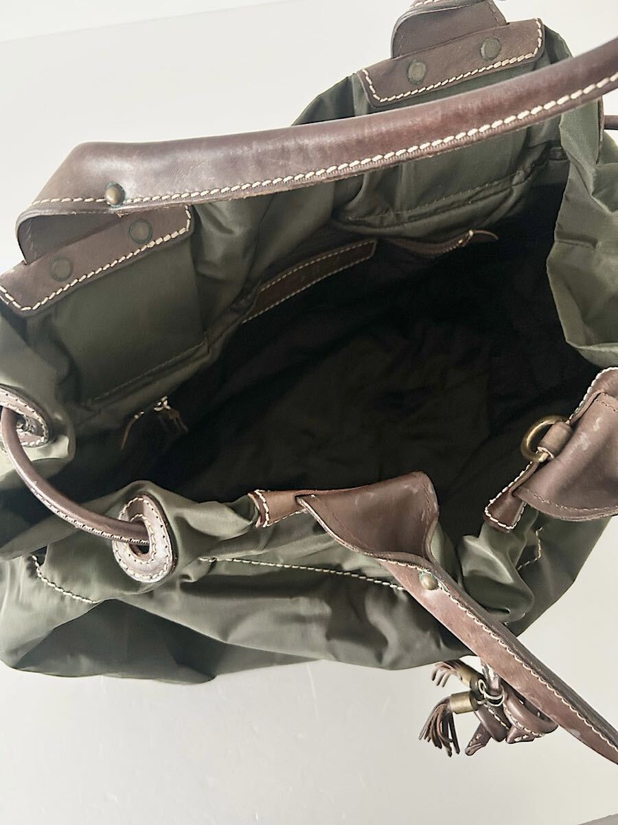 カラーはブラウンカーキでナイロン素材のバッグです。