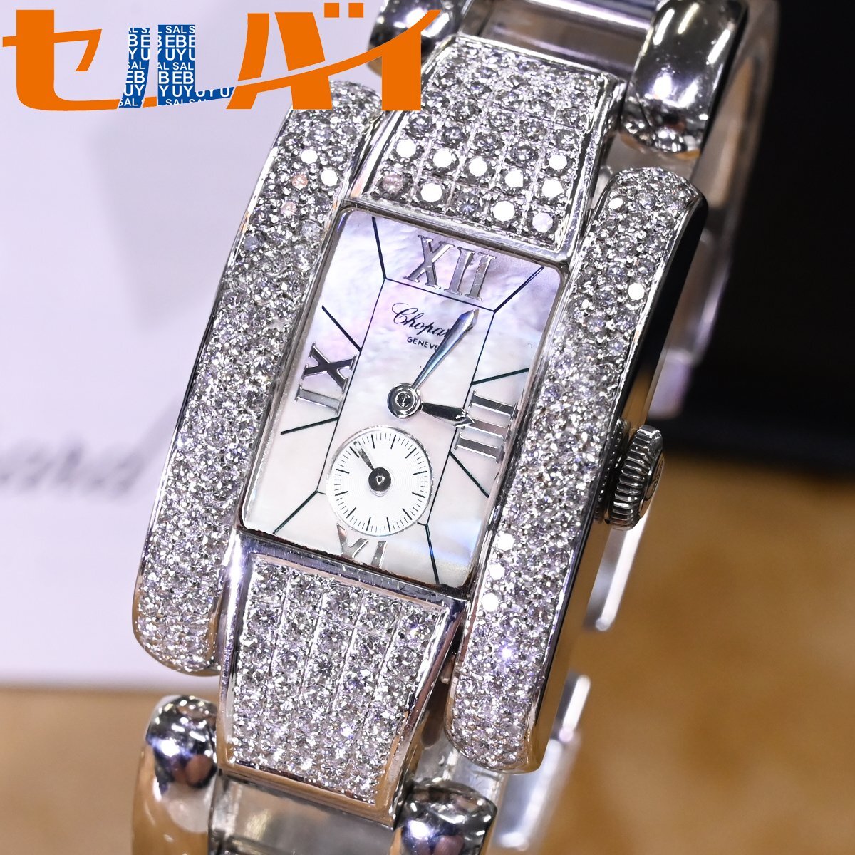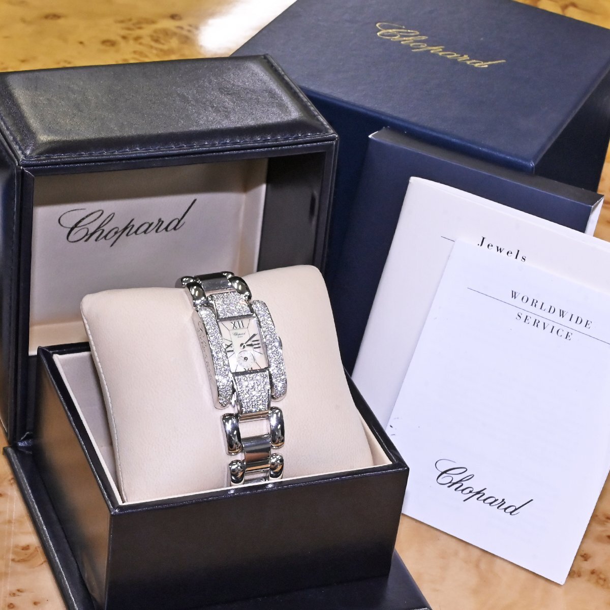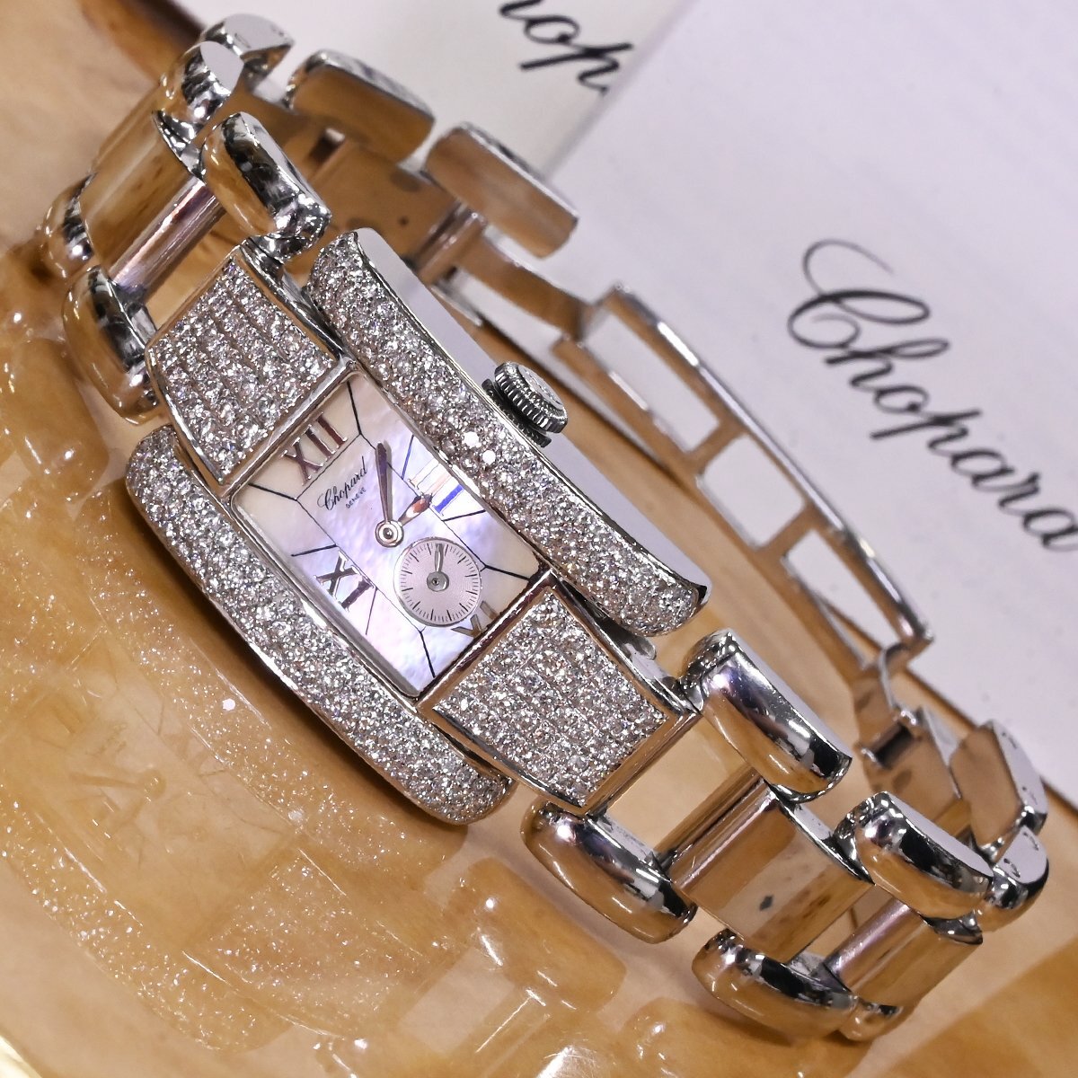ショパールのフルダイヤ LA STRADAです。 イタリア映画界の巨匠であり“映像の魔術師”の異名を持つフェデリコ・フェリーニ氏の代表作『道(LA STRADA)』から名付けられた時計です。 時計ケースとブレスレットがリンクし一体感を持たせた独特のデザインは、1950年代に銀幕で輝いていたミューズたちへオマージュを捧げたもの。 腕元で存在を主張するボリューム感とイタリアらしい豊かな感性が息づくデザインは、何気ないデイリースタイルにオーラを纏わせます。 市場流通量の圧倒的に少ないモデルなのでお探しの方も非常に多いかと思います。 ※基本動作確認済。 |