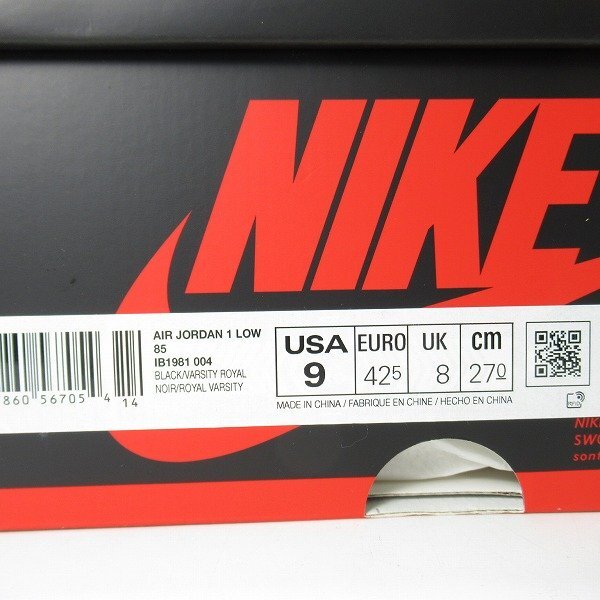| NIKE/ナイキ AIR JORDAN1 LOW 85 Royal/ナイキ エアジョーダン 1 ロー IB1981-004 /27 /080 | |||||||||||||||||||||||||