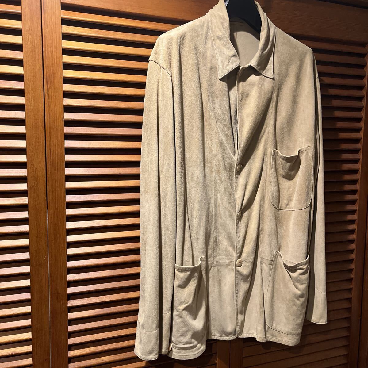 無骨なデザインと品の良いスエードの質感がマッチしたコモリらしい一着。