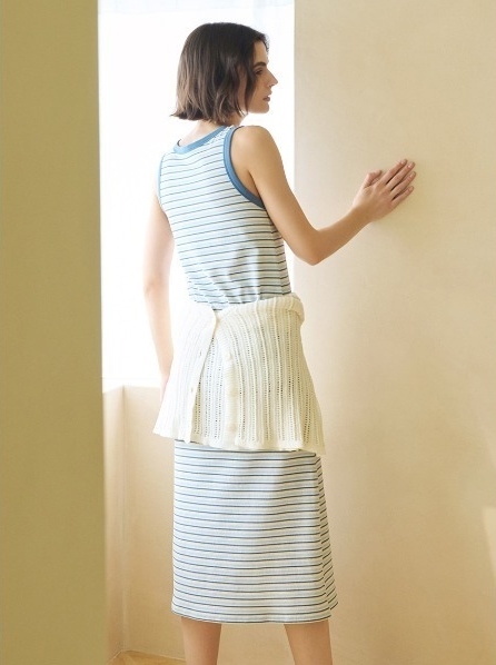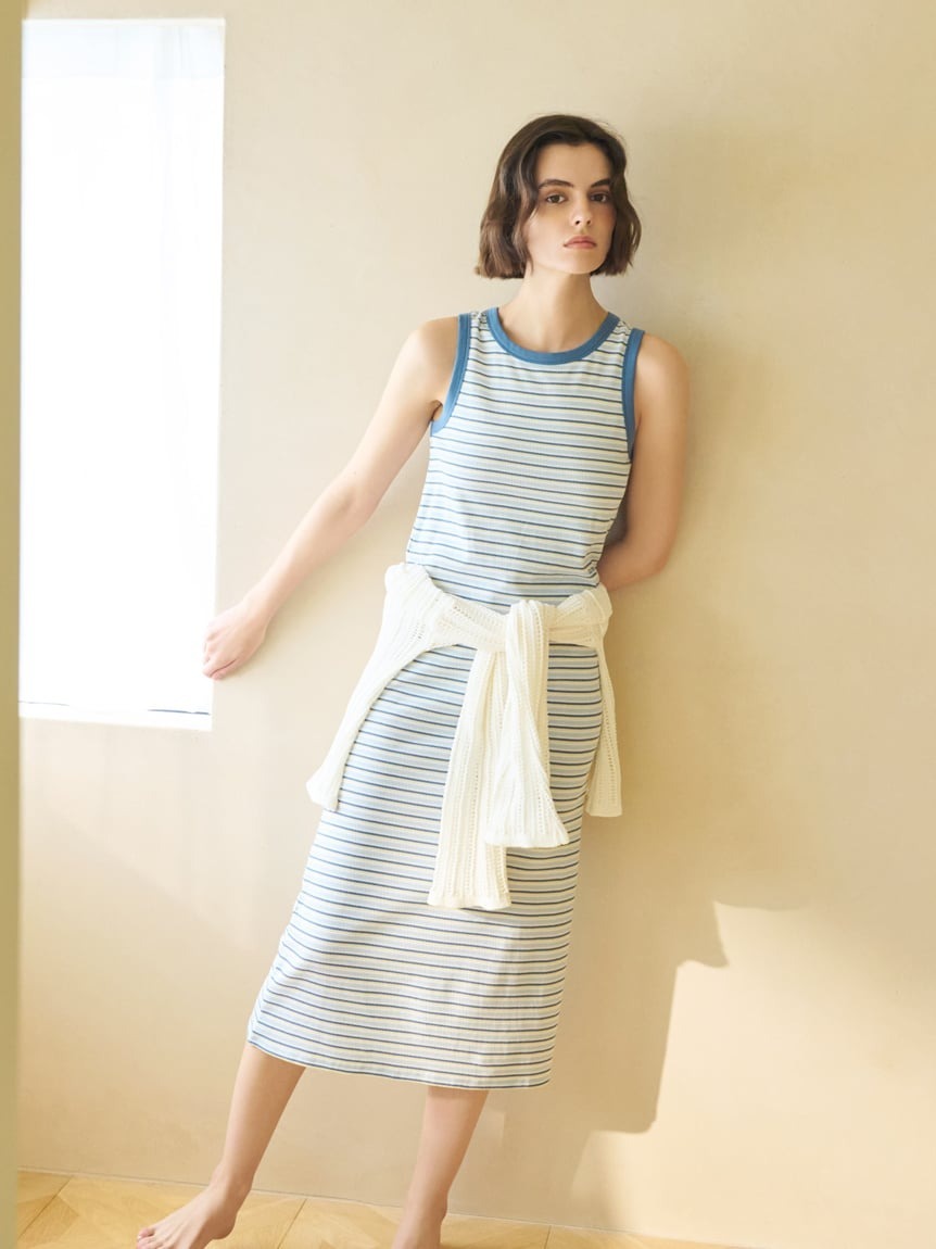 新品タグ付き ジェラートピケ カラフル ボーダー タンクトップ ワンピース gelato pique ブルー 水色