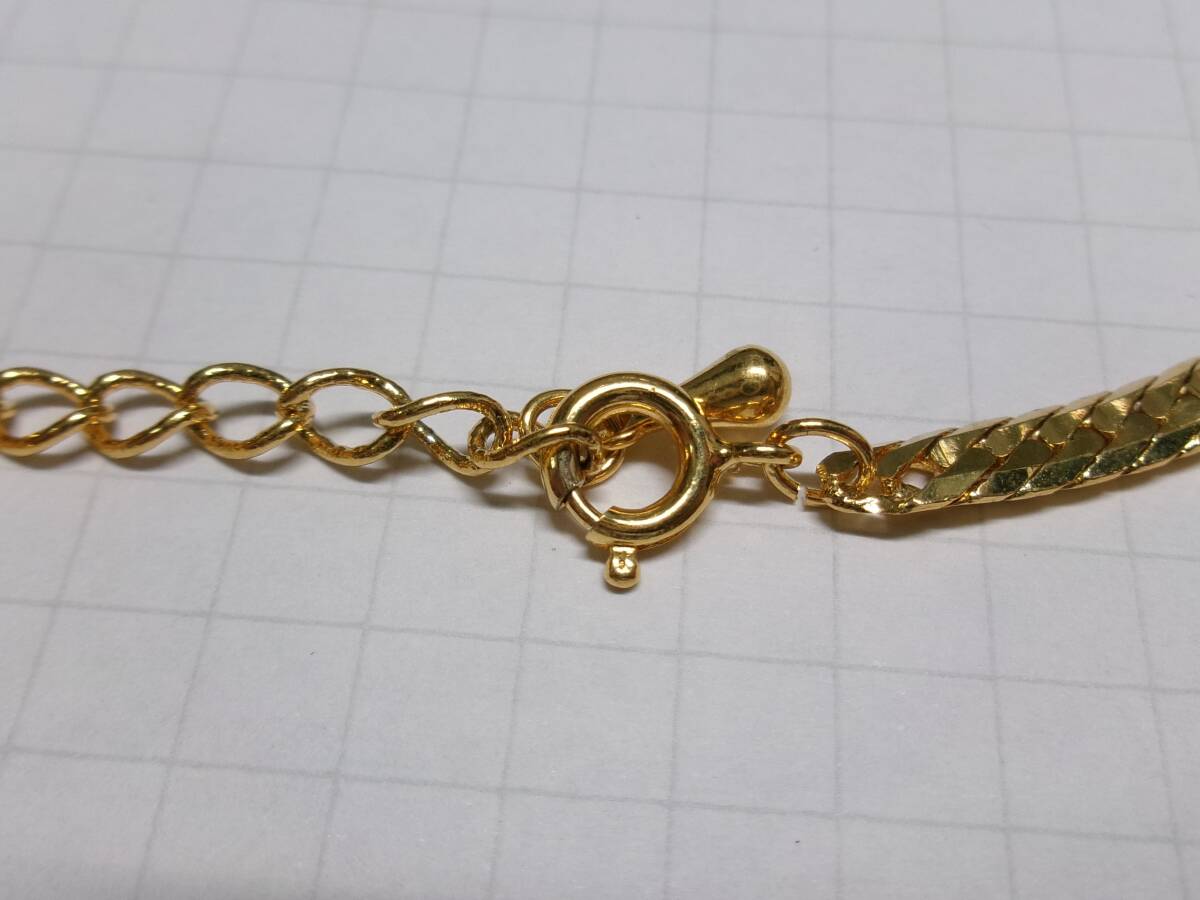 撮影の腕が悪いので画像は実物の方が良い場合が有ります。 重量:約19.15g サイズ:45cm 5mm方眼紙、メジャーを参照してください サイズ直しは専門店でお願いします。 材質:不明 刻印:無し 他見落としがある場合があります 状態:中古品 ご不明な点等がございましたらご気軽にご質問下さい (10時~17時30分)。即決はございません。 落札後24時間以内に連絡、72時間以内にお支払いが出来る方のみ入札をお願い致します。 取り置き 同梱可能です。(清算は済ませてください) 取り置き 別の日に決済の場合送料は現金でお返しします。 |