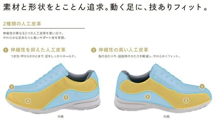 12mの高さから生卵を落としても割れずに6m以上跳ね返す 「パワークッションョンプラス」搭載 。疲れにくい!!ヨネックスのパワークッション、ウォーキングシューズです。 かかとから指先まで全面フォロー! パワークッションプラスで快適ウォーク 濡れた路面も滑りにくい レイングリップソール 片足約260g(26.0cm) ■撥水ストレッチPUレザー 伸縮性が高く、ソフトな履き心地ながらもフィット感はしっかりとした人工皮革。 様々な甲の高さや足幅にも柔軟に適応します。 ■ベリークール 裏面のパワークッションは格子状に成型。表面は水分と接する熱を吸収する「キシリトール」でムレを軽減。 ウェーブが足の滑りを防止し、快適な履き心地。 ■レイングリップソール 波状の切れ目が地面を捉え、濡れた路面のグリップ性が向上し、滑りにくくなりました。 |