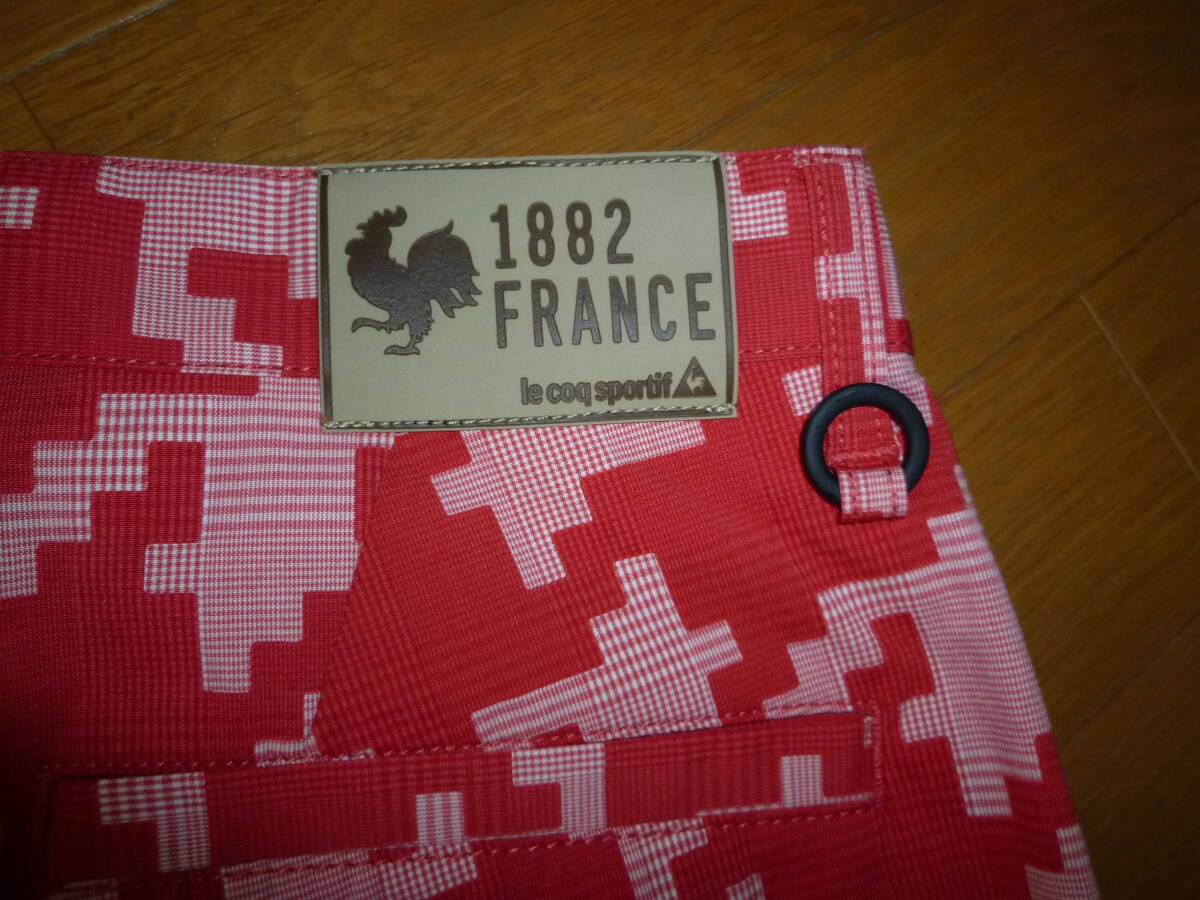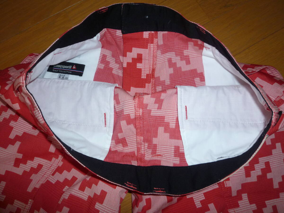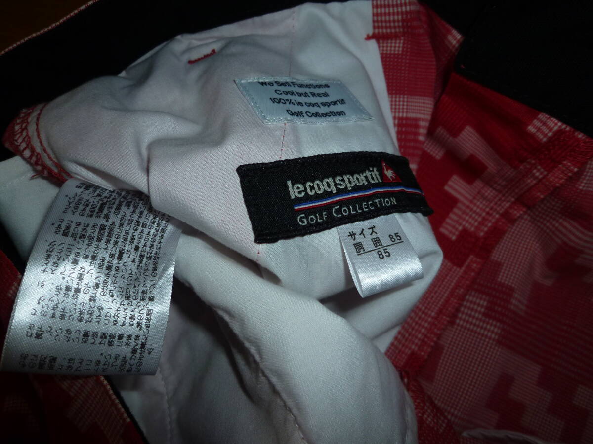 美品 ルコックゴルフ  チェック柄ストレッチパンツ W85 レッド QG8451