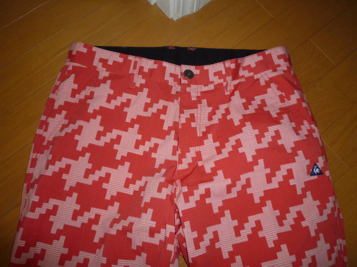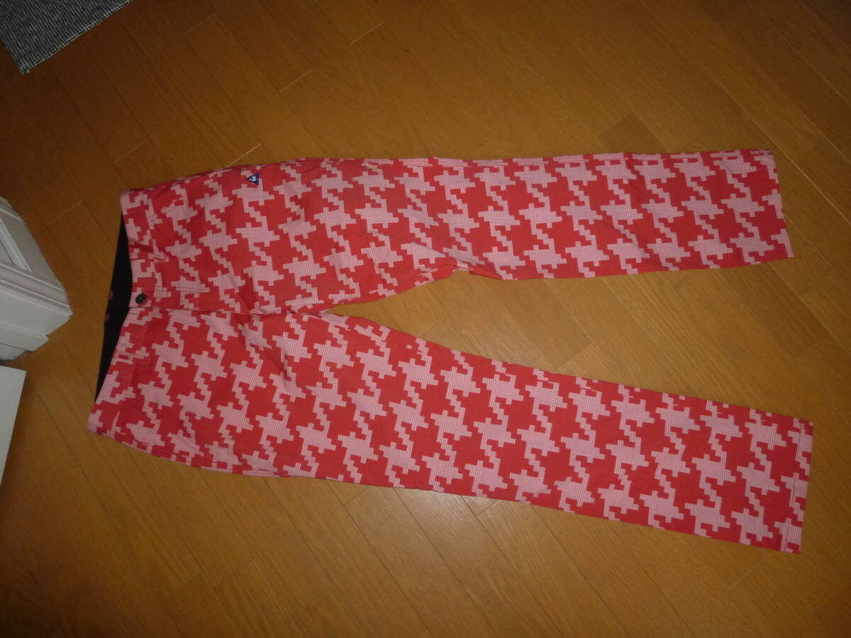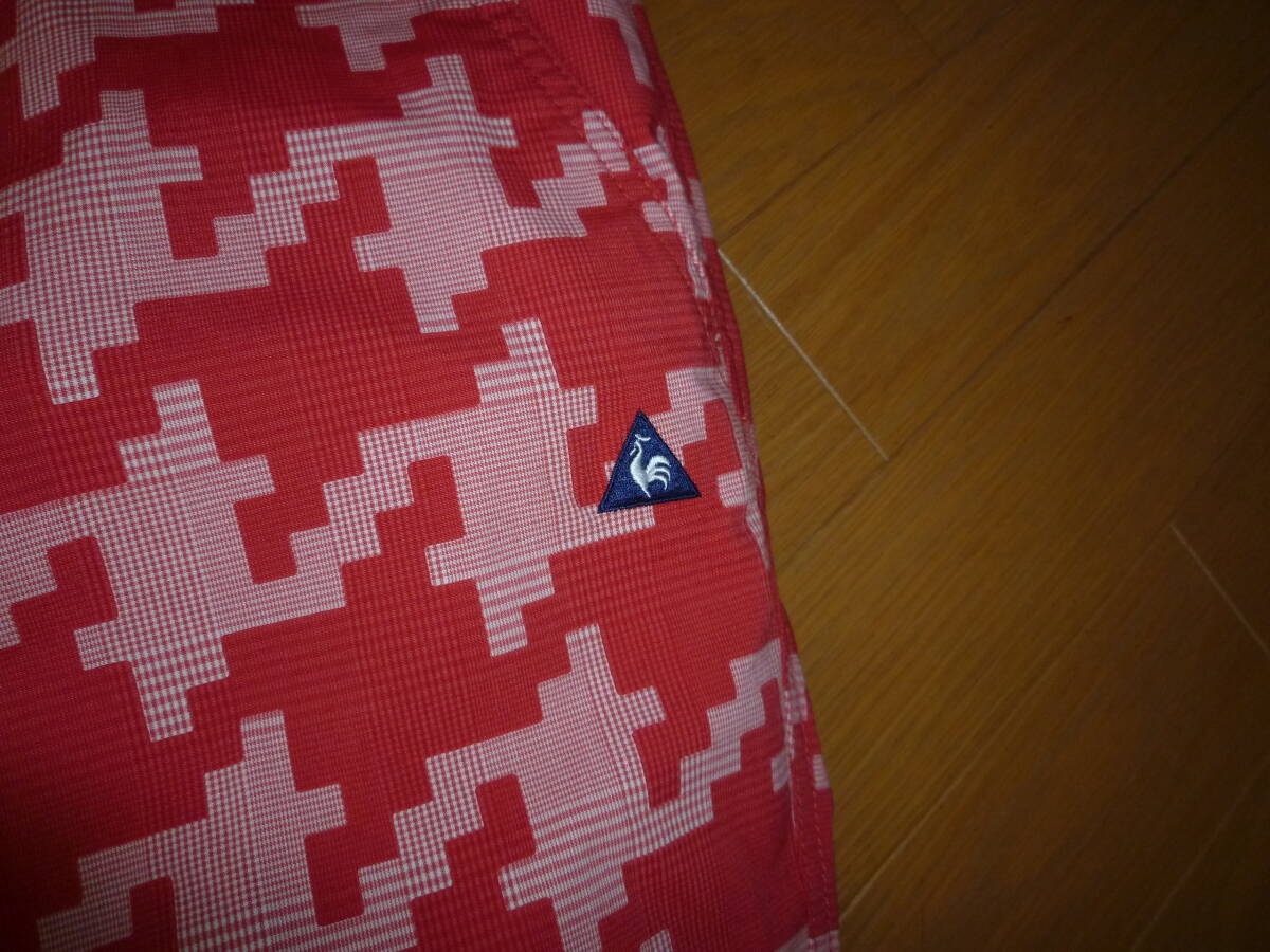 美品 ルコックゴルフ  チェック柄ストレッチパンツ W85 レッド QG8451