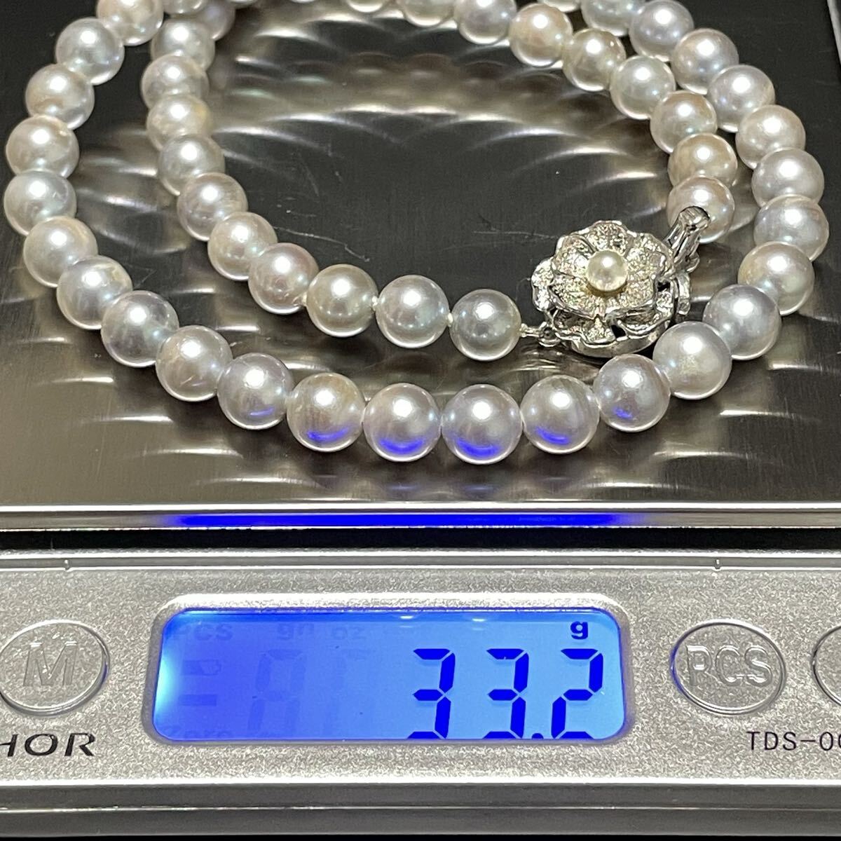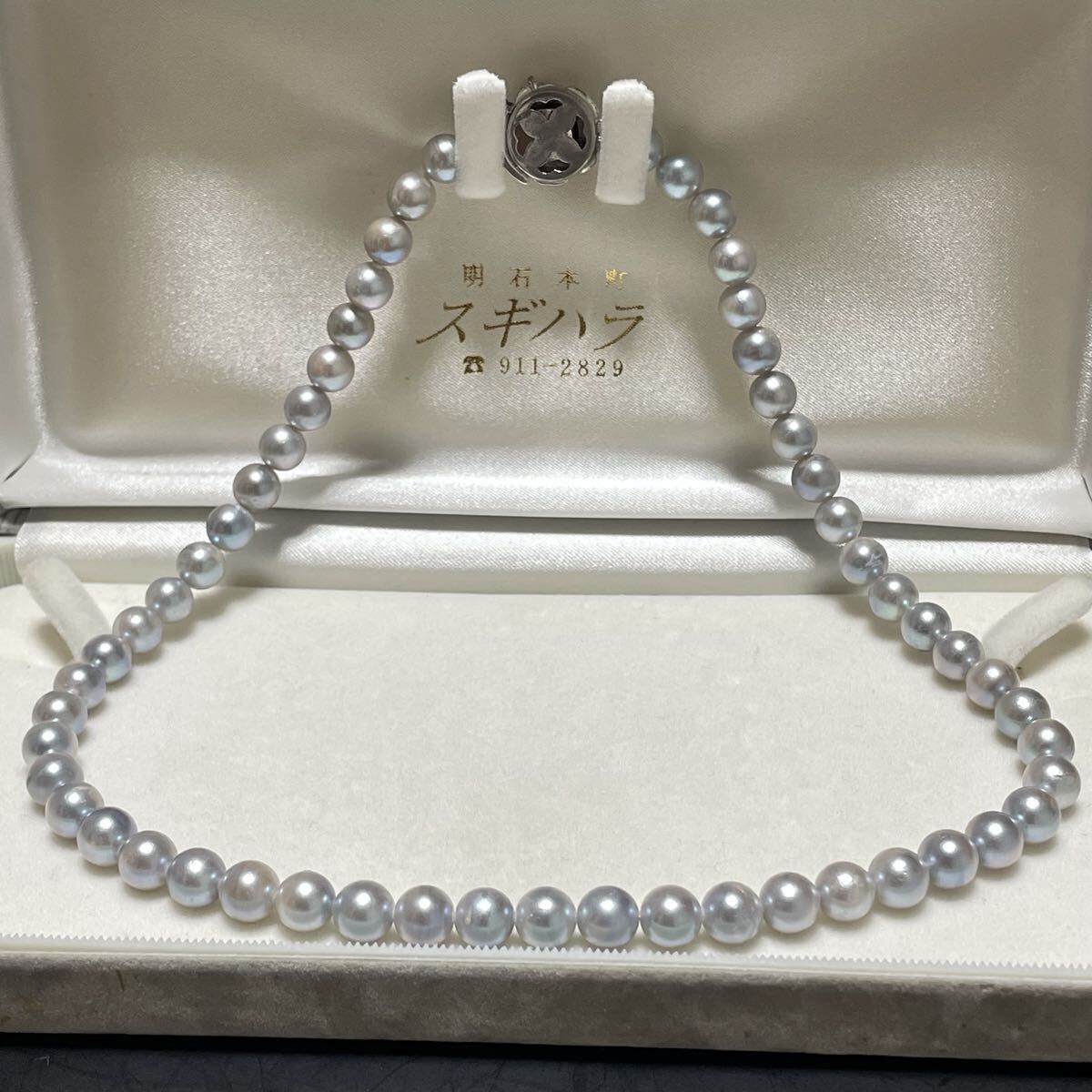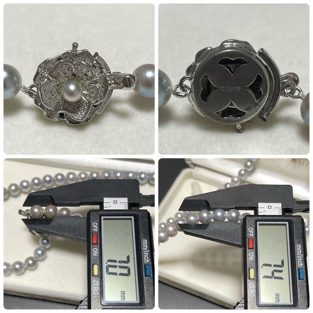 テリ強 花珠級 約7.0-7.5mm 約42cm あこや真珠 本真珠 ネックレス pearl パール SILVER刻印 オーロラ干渉色 シルバー金具 ブルー系 グレー
