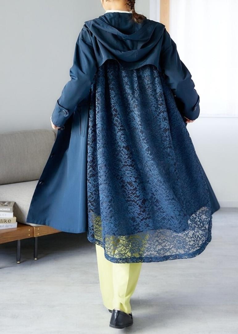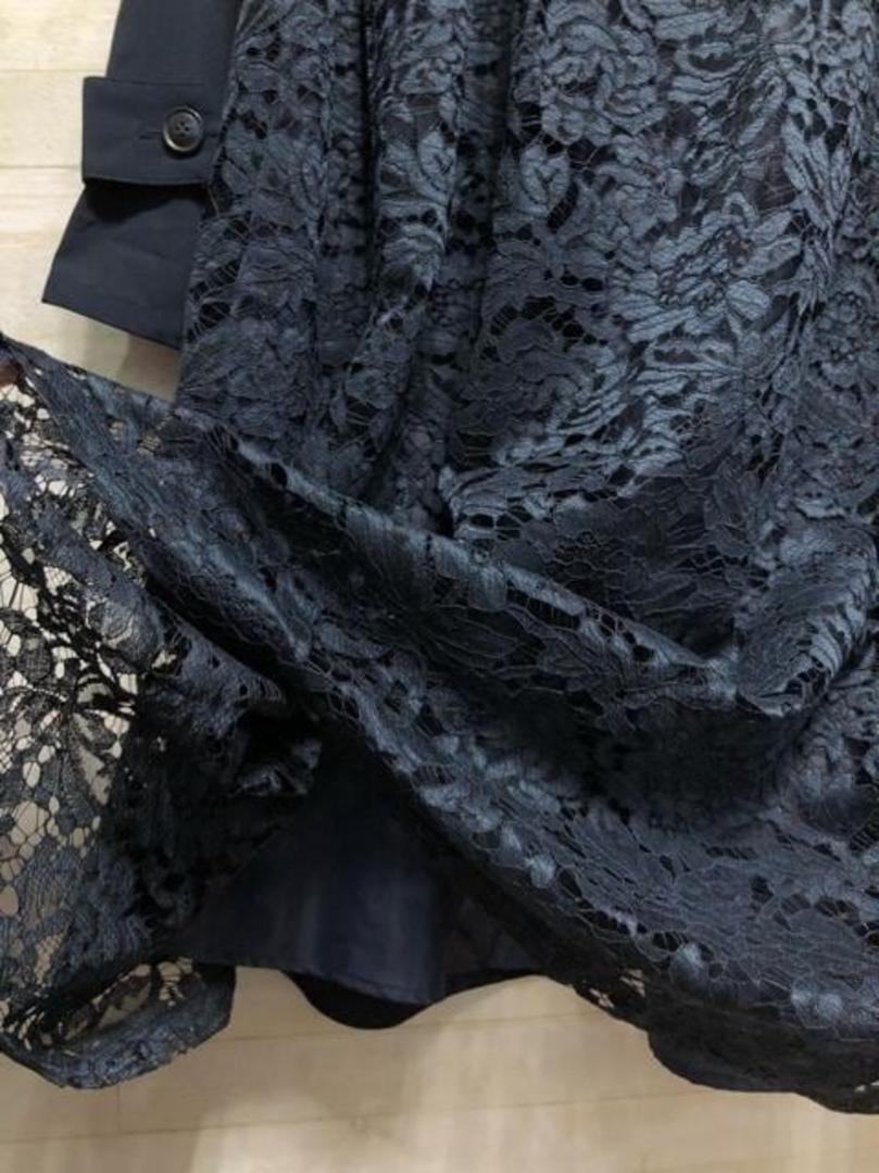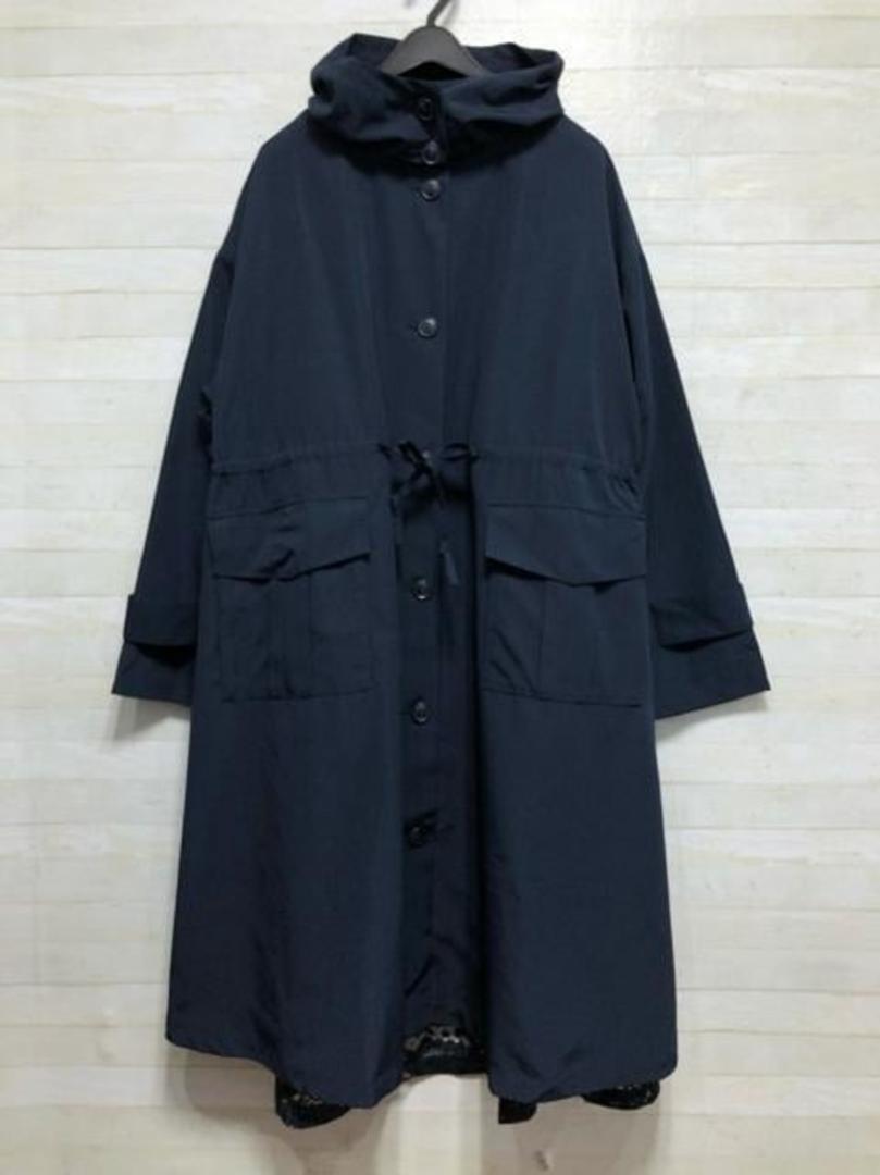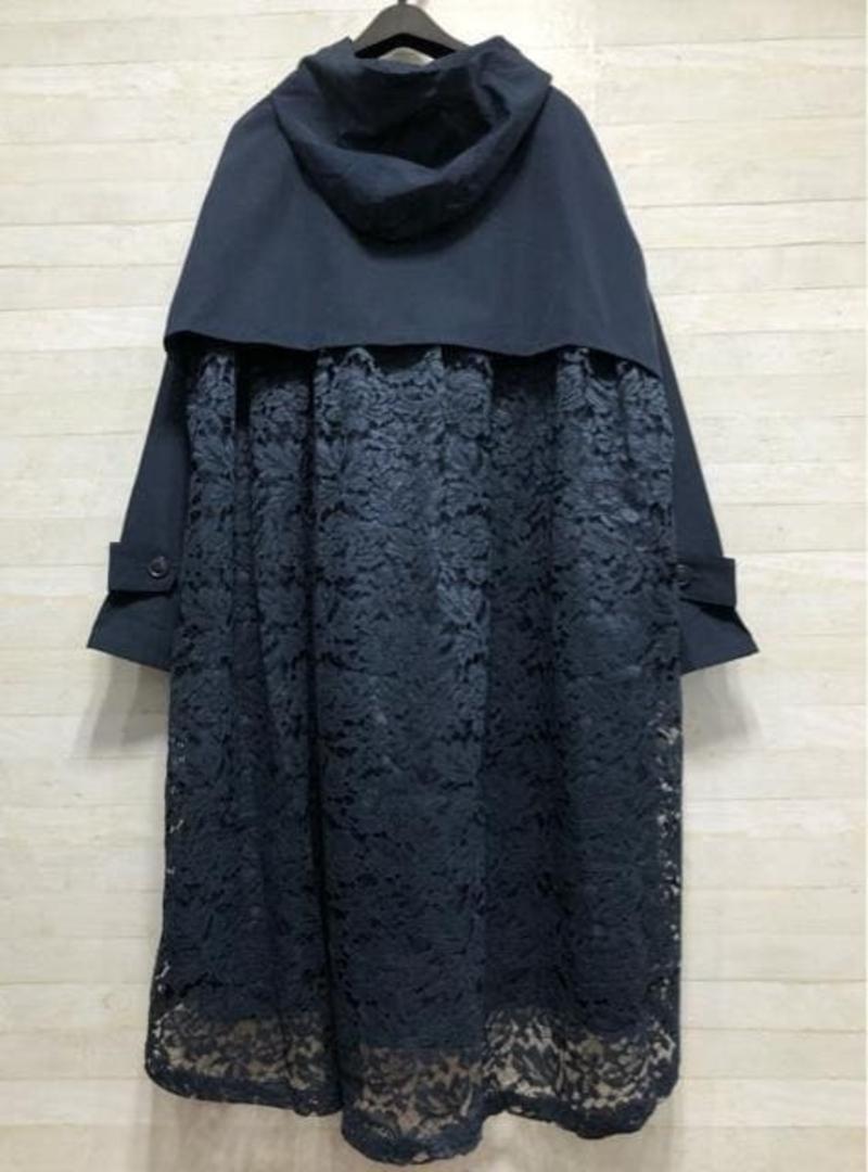 新品☆4L♪紺系♪オシャレ♪後ろレースのモッズコート♪トレンチ☆Q158
