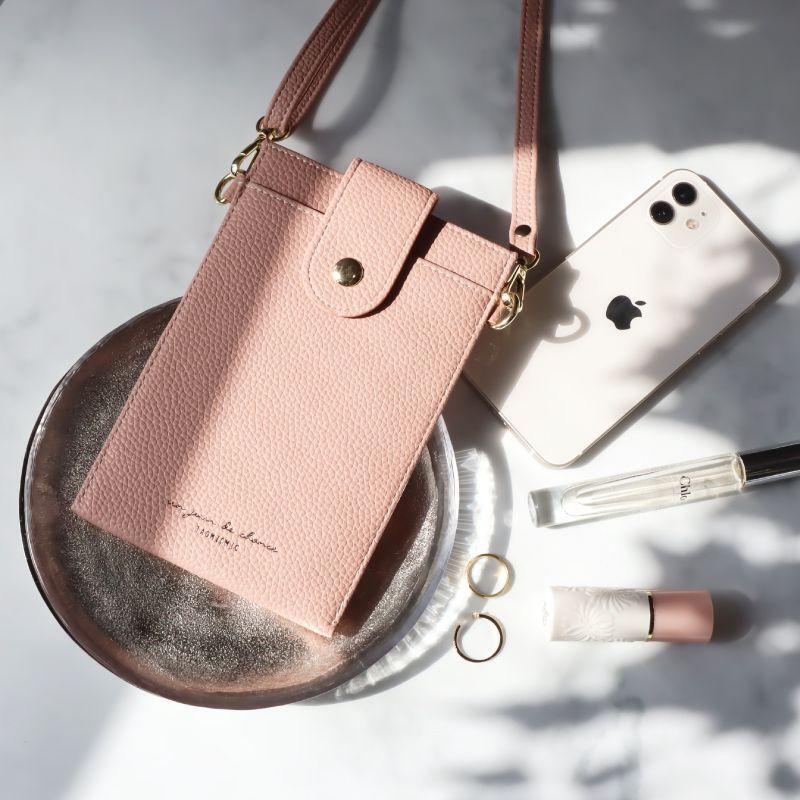 スマホショルダー 携帯ケース ショルダー 携帯ショルダー バッグ スマホポーチ スマホポシェット 財布付き 革 JHB0131 ダスティーピンク