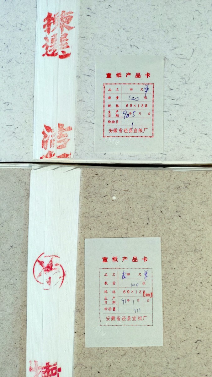 紅星牌 楝選 四尺 棉料 単宣 1990年5月 エンボス刻印付き検品札有 全紙(半切サイズ) 100枚×2反=200枚 35cm×138cm   2.4kg