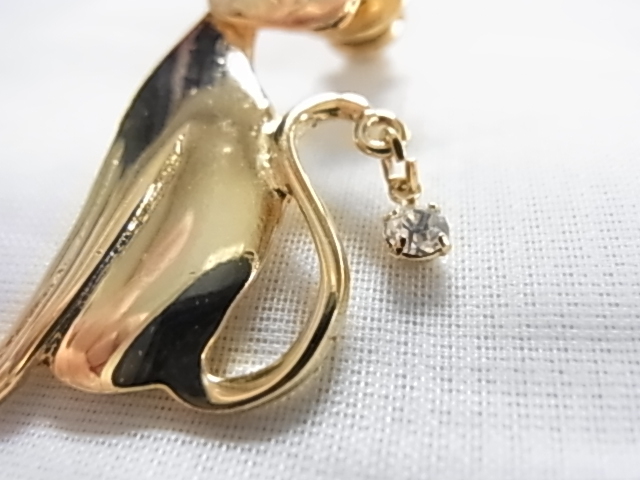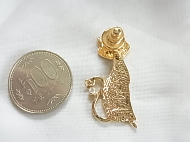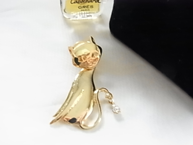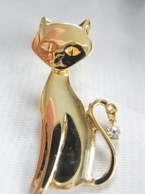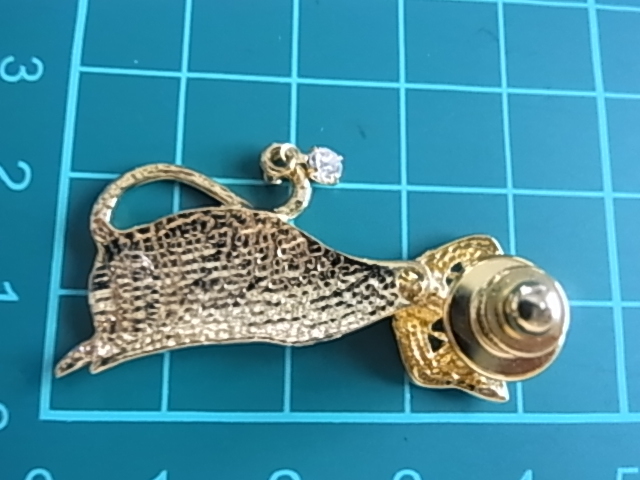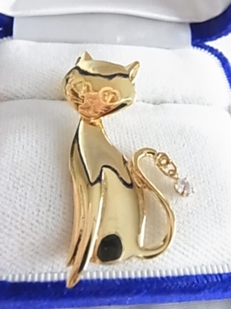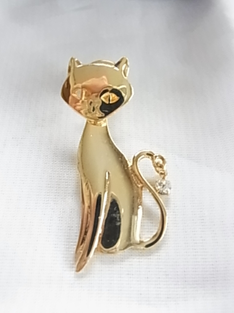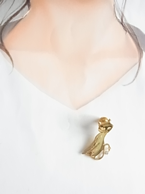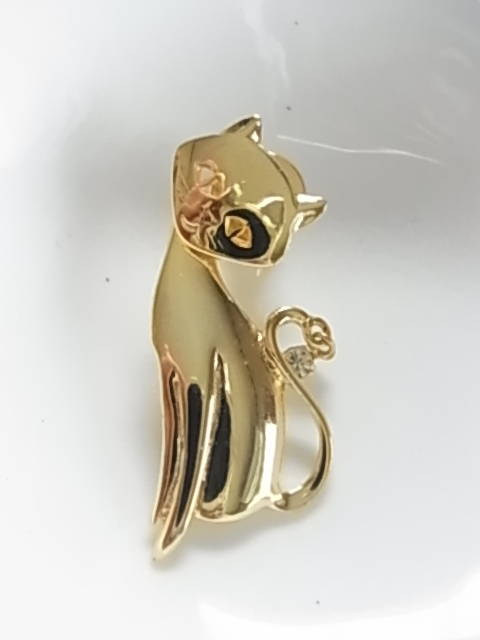 ゴールドトーン 金色トーンの猫ちゃん ネコ Cat キャットモチーフ クリアラインストーン輝くキラキラ 胴体スイングのピンブローチ※