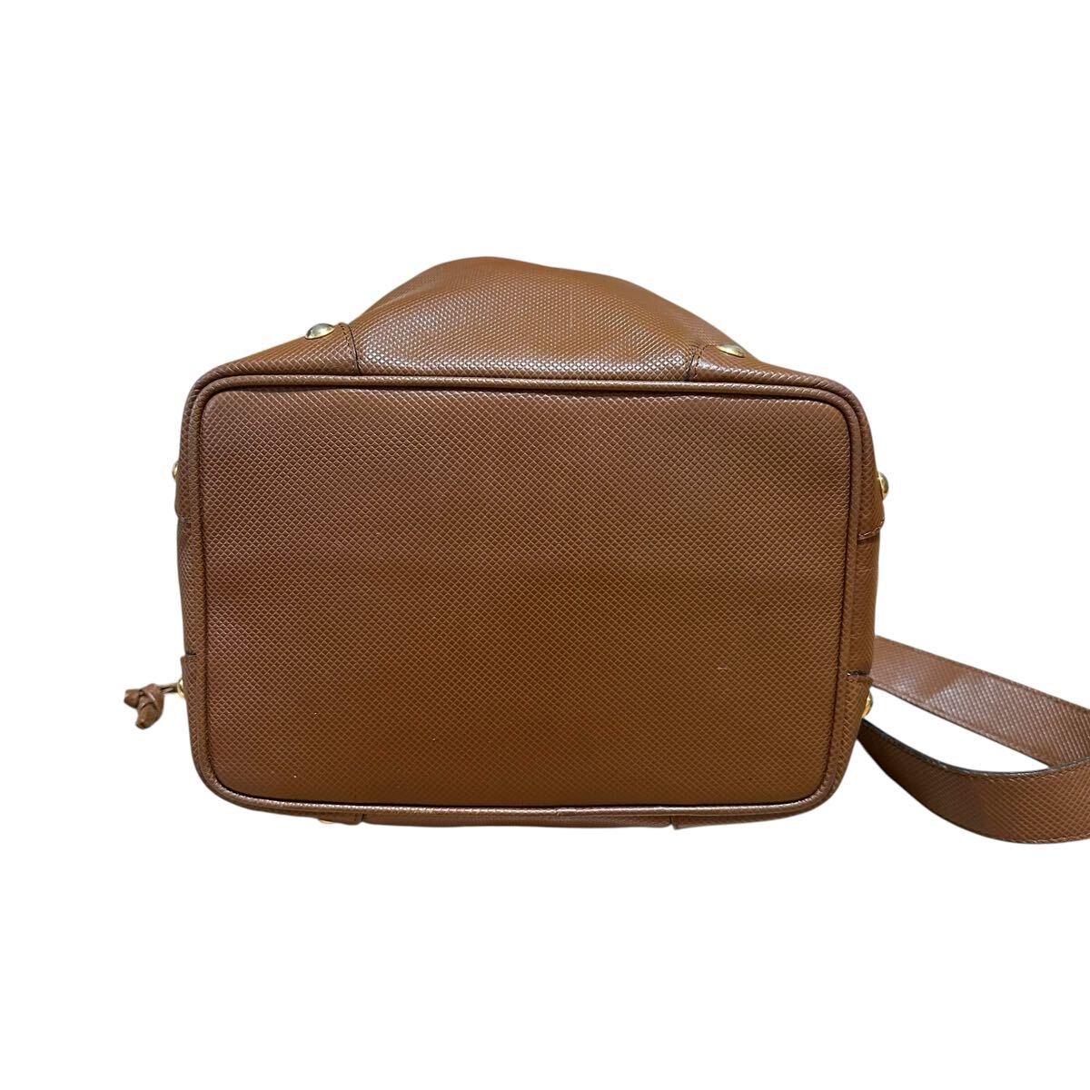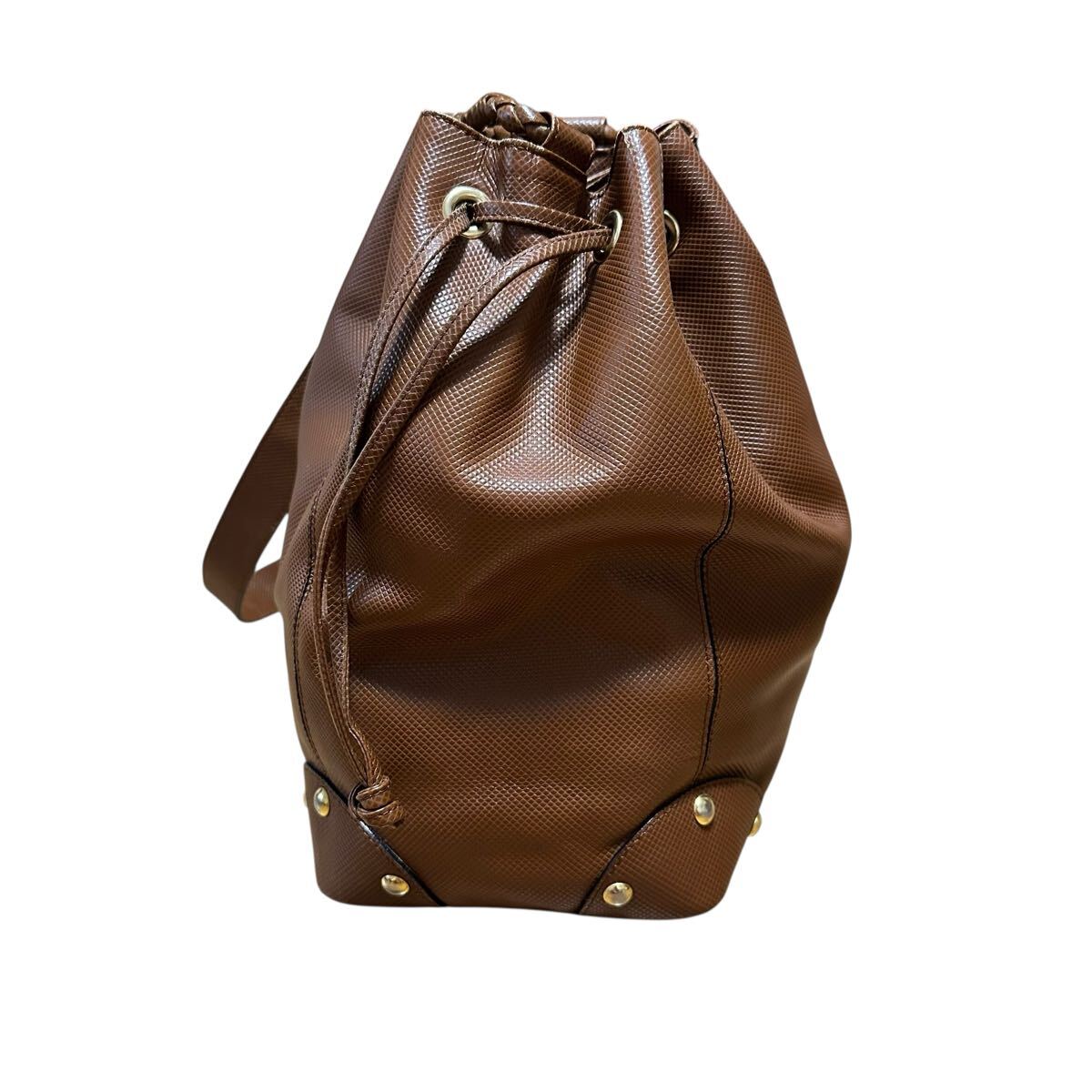 巾着バッグ本体とショルダーストラップを繋ぐ部分がイントレチャートになっておりとてもオシャレで高級感のあるバッグとなっております
