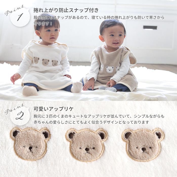 | 商品説明 | ・・オフホワイト、ブラウン、グレー、ピンクの4色展開! ・ピンクは2023年度からの新色になります! ・可愛い3匹のくまのアップリケが付いたもこもこ素材のスリーパー。 ・バインダーの上にスナップをつけたことで、スナップの取り外しがより簡単に。 ・ふわふわの手触りでしっかりと赤ちゃんを寒さから守ります。 |