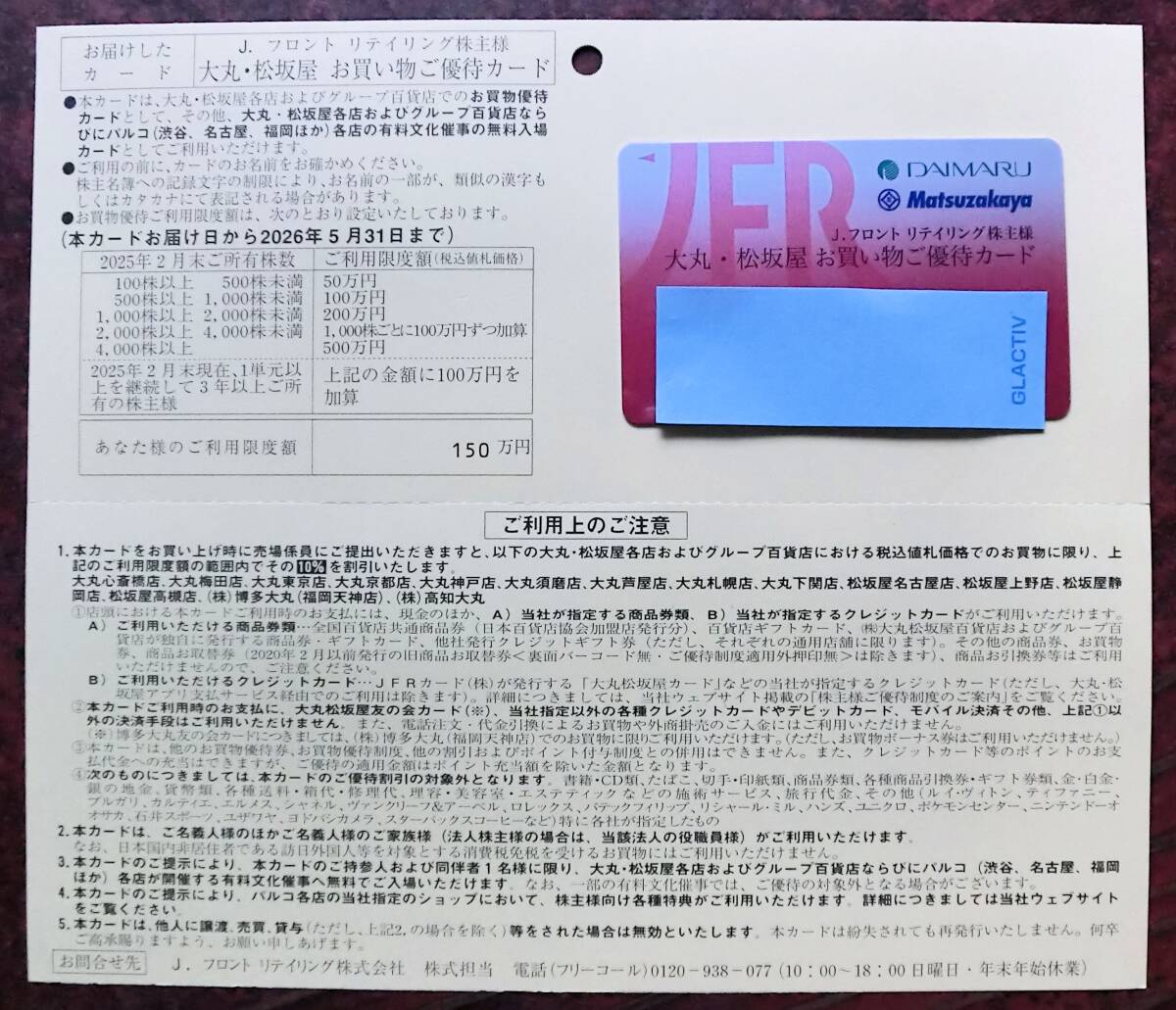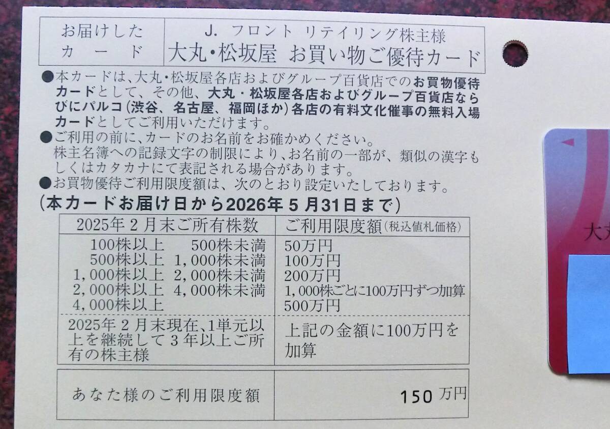 送料込★Jフロント リテイリング 株主優待カード ( 限度額150万円 女性名義)2026年5月末までです。