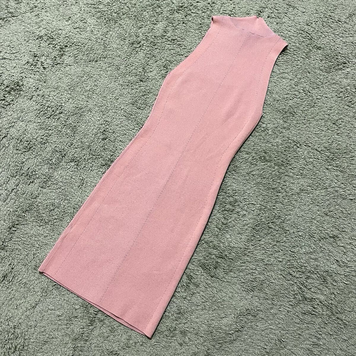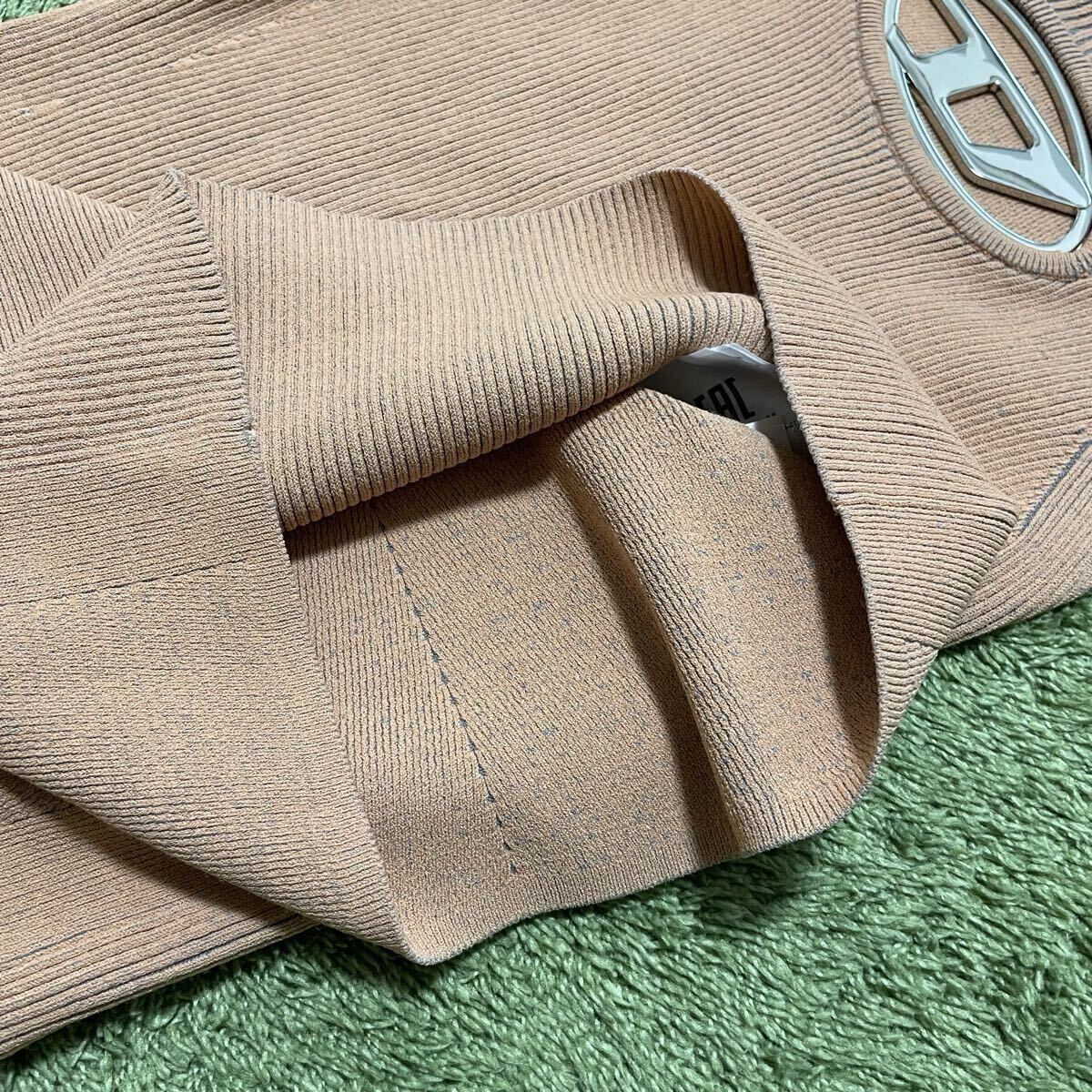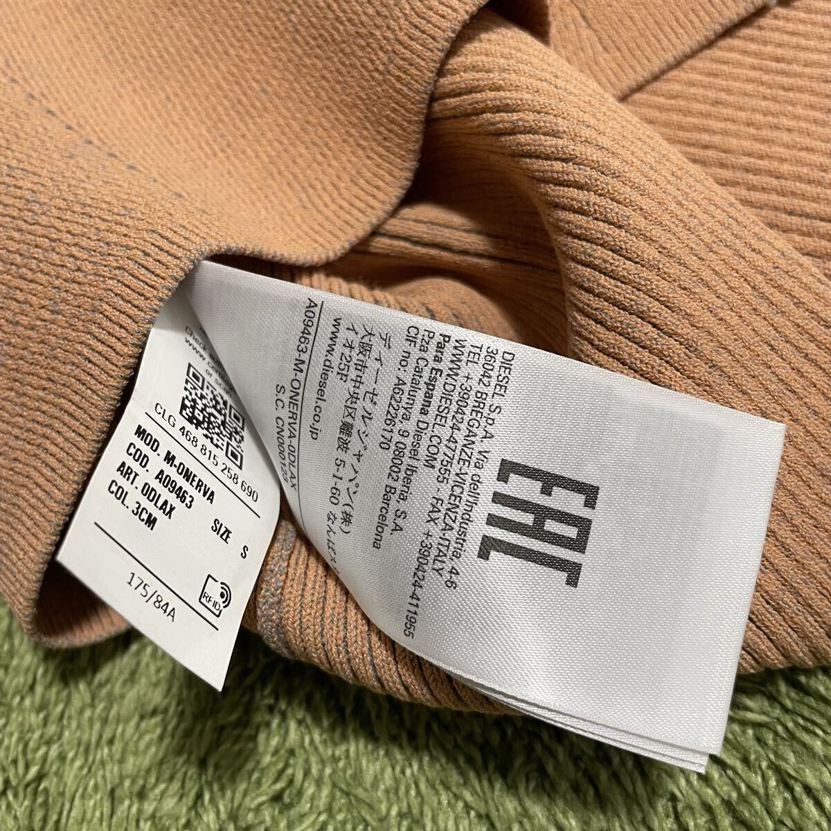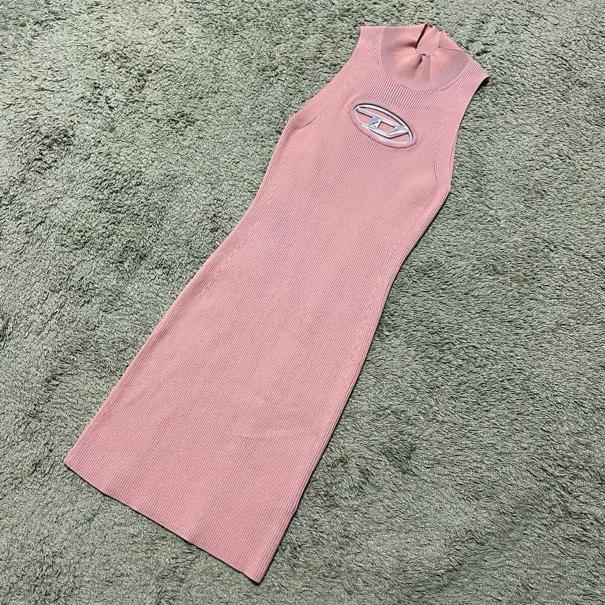 未使用保管品 DIESEL ディーゼル オネルバ ニット ノースリーブ ワンピース ストレッチ ピンクベージュ Dロゴ サイズ:S レディース