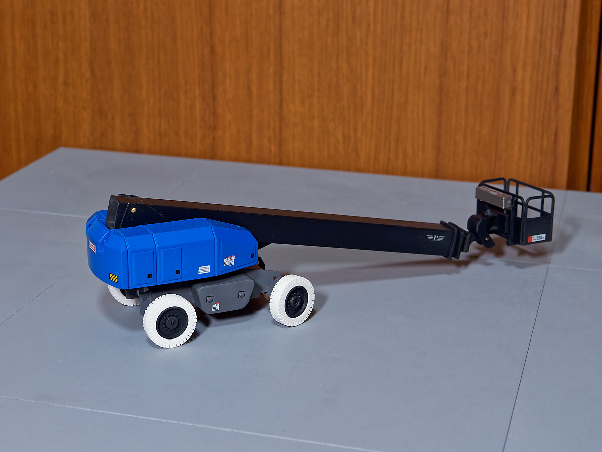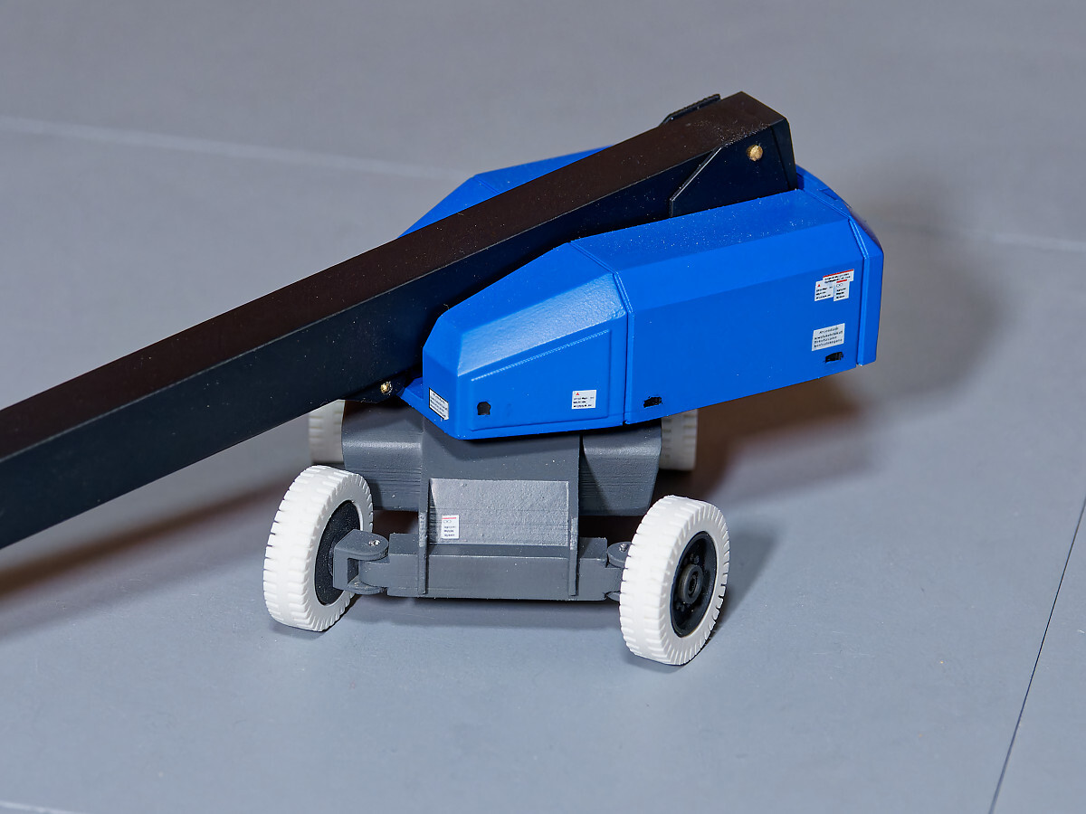 1/50スケール 高所作業車 タイヤ直伸ブームリフト ステア版 ミニチュア 自作品 (青)