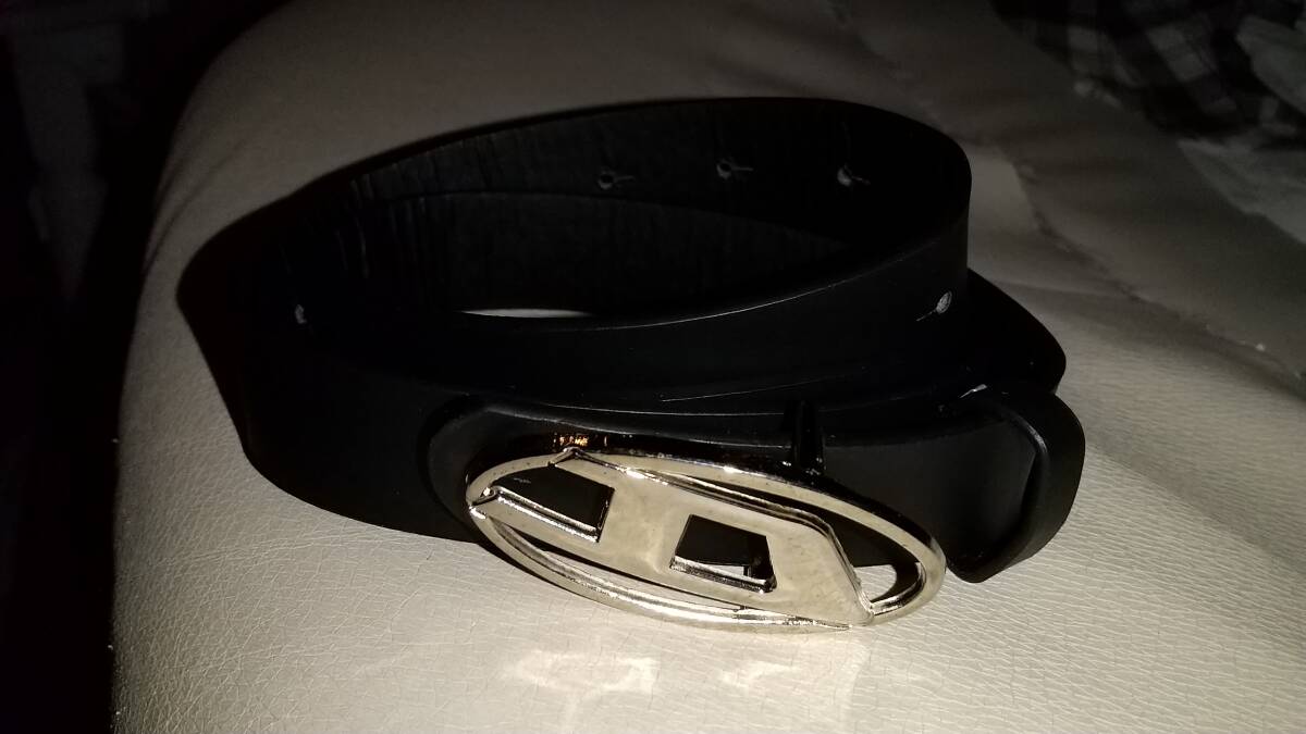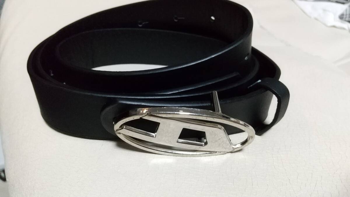 Dロゴのメンズベルトです。ブラックのベルトにシルバーのロゴバックルが特徴です。