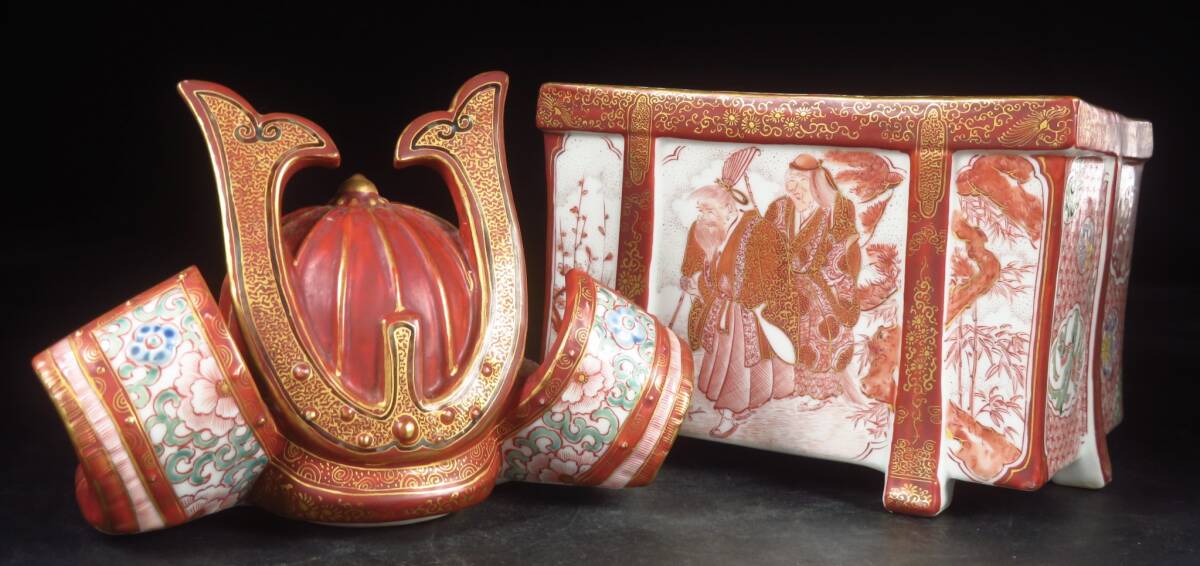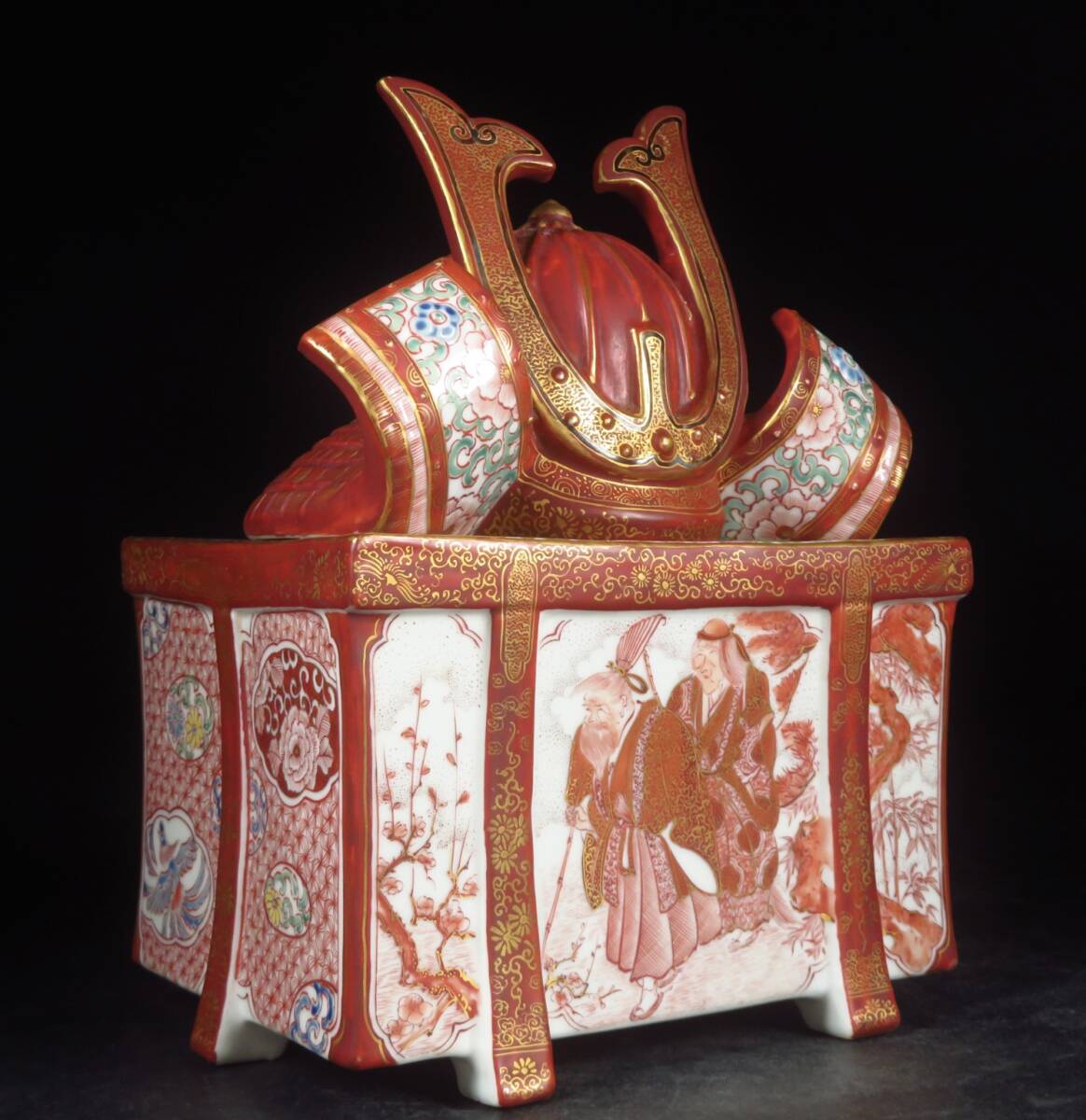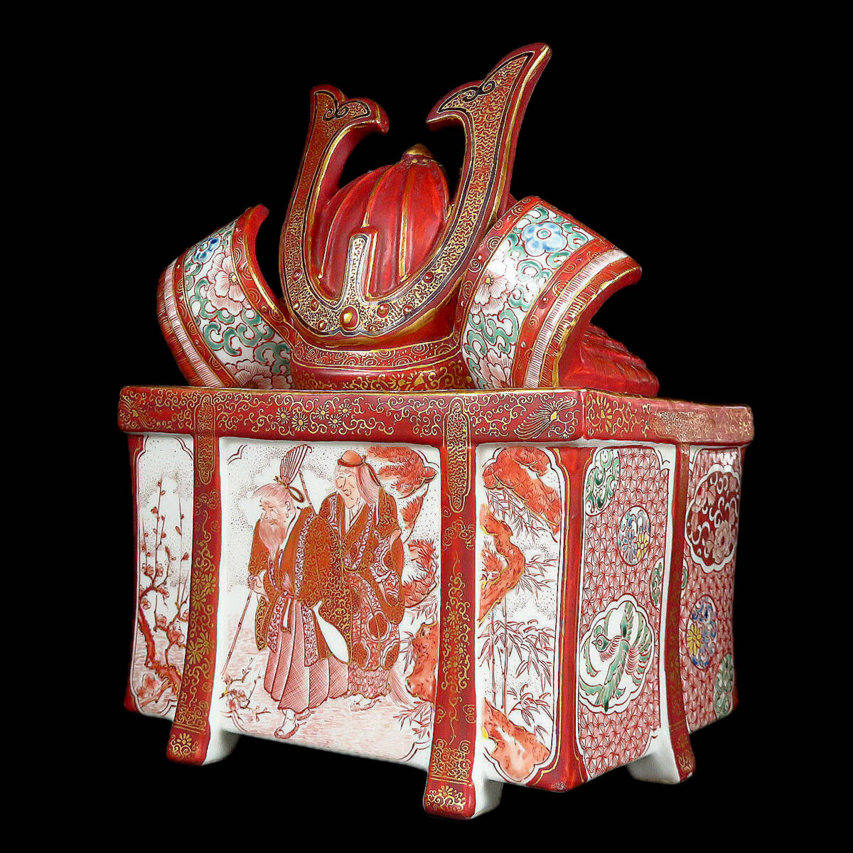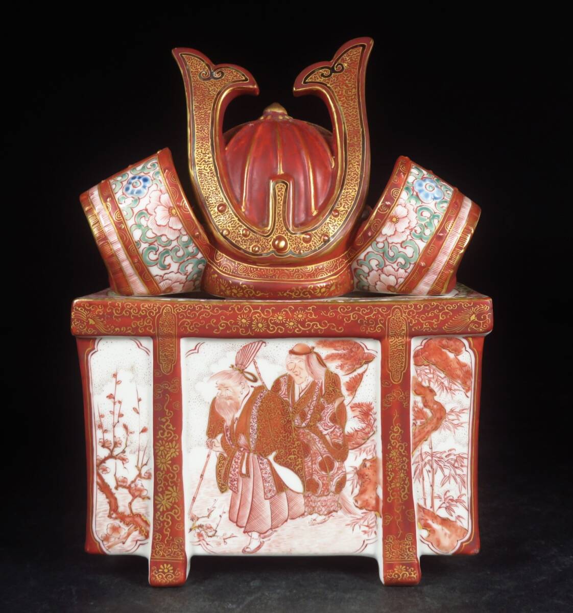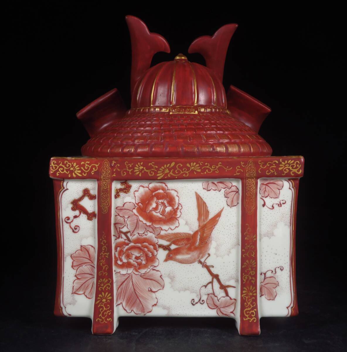| 【SAKURAYA】秀逸作品【金彩赤絵花鳥人物文兜形香炉】香櫨 細密絵付 香道具 茶道具 骨董品 古美術品 希少品 九谷焼 時代物 高さ18cm | ||