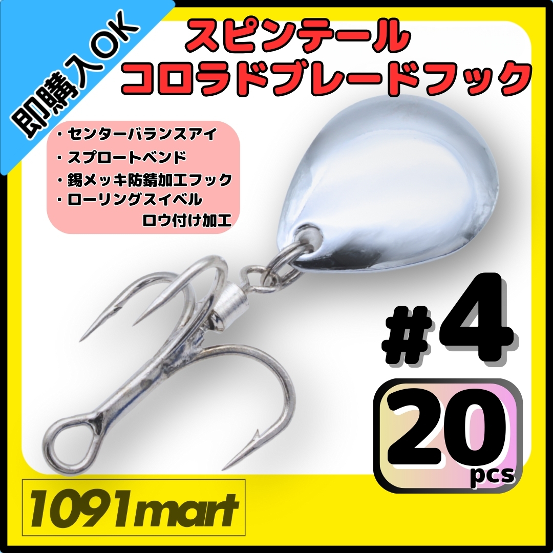 【送料無料】スピンテール コロラドブレードフック #4 20個セット ロウ付けスイベル メタルジグ ルアーのブレードチューンに!