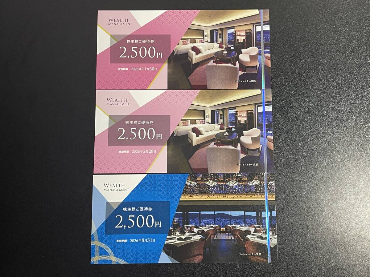 ウェルス・マネジメント 株主優待 7500円分 有効期限 25年11月30日 & 26年2月28日 & 26年8月31日