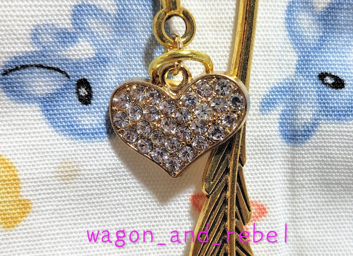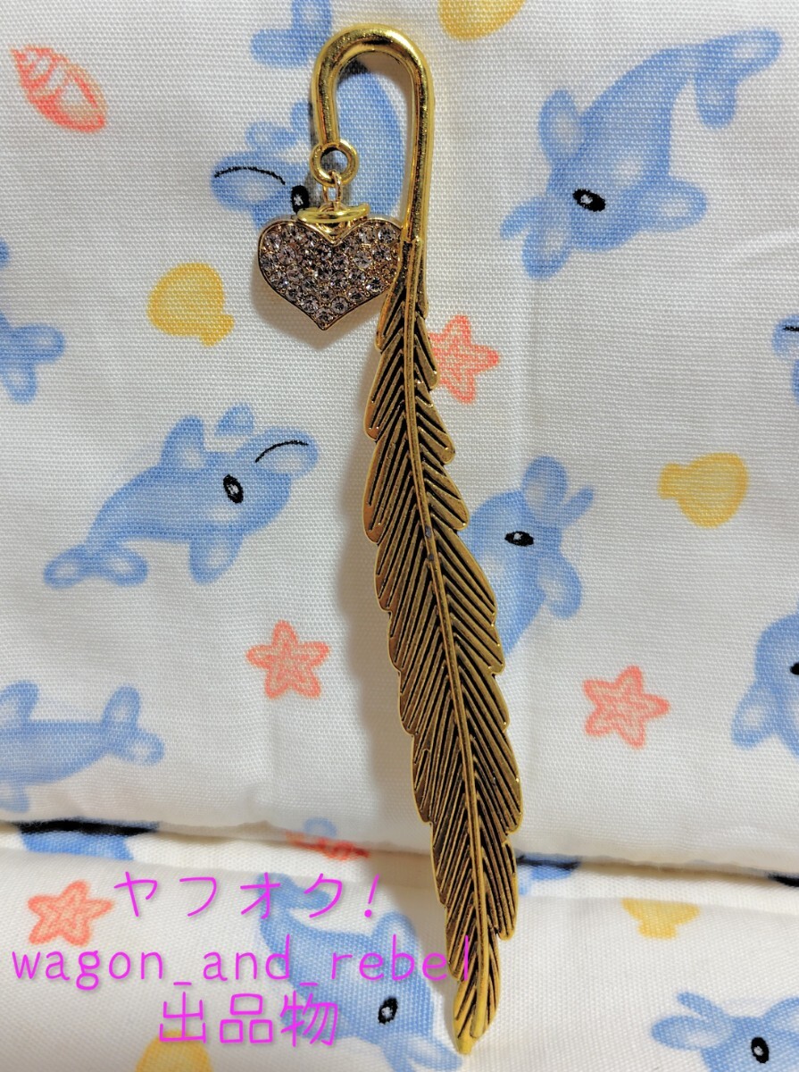 きらきらハートが揺れる羽根モチーフのブックマーカーになります。