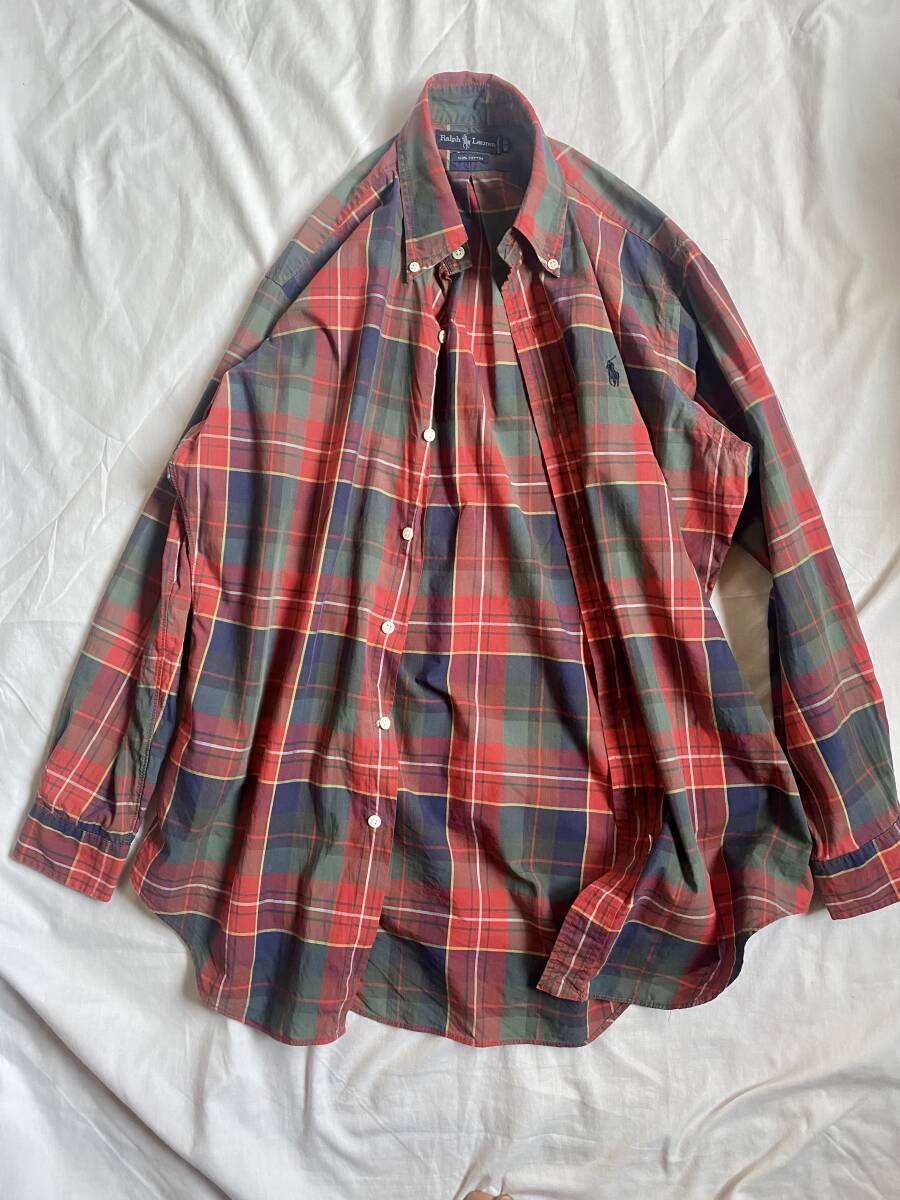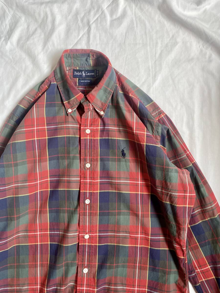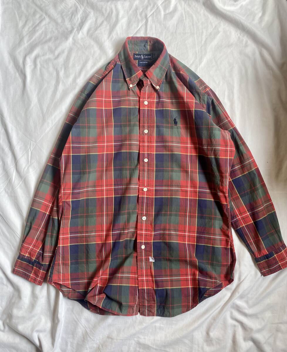90s Polo Ralph Lauren ポロラルフローレン ボタンダウンシャツ オールド チェック 15 1/2 タータン ヴィンテージ 長袖 BDシャツ