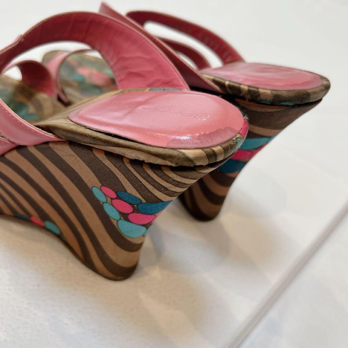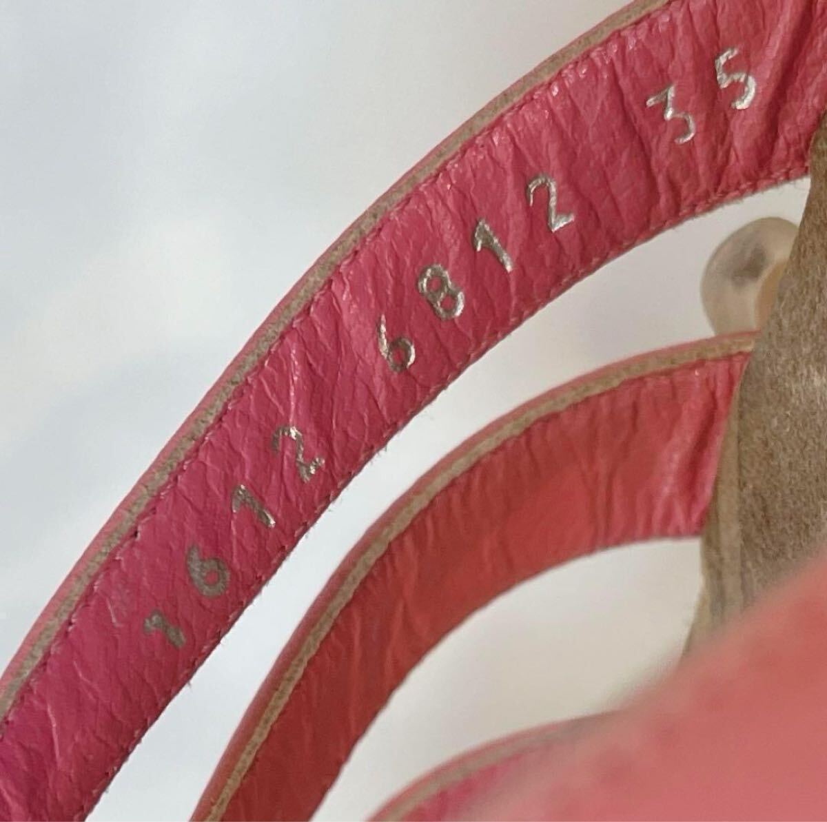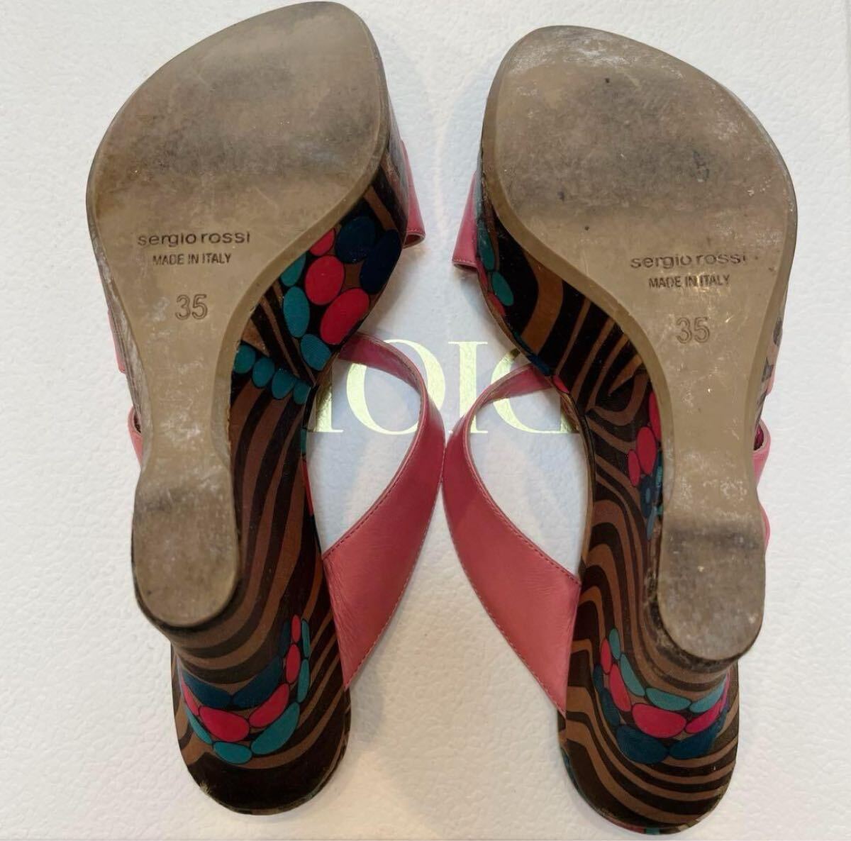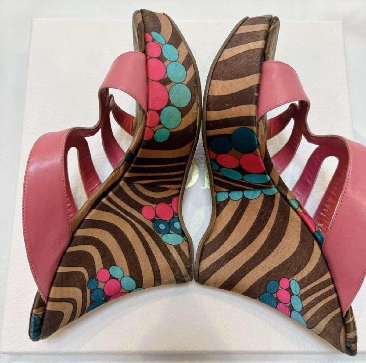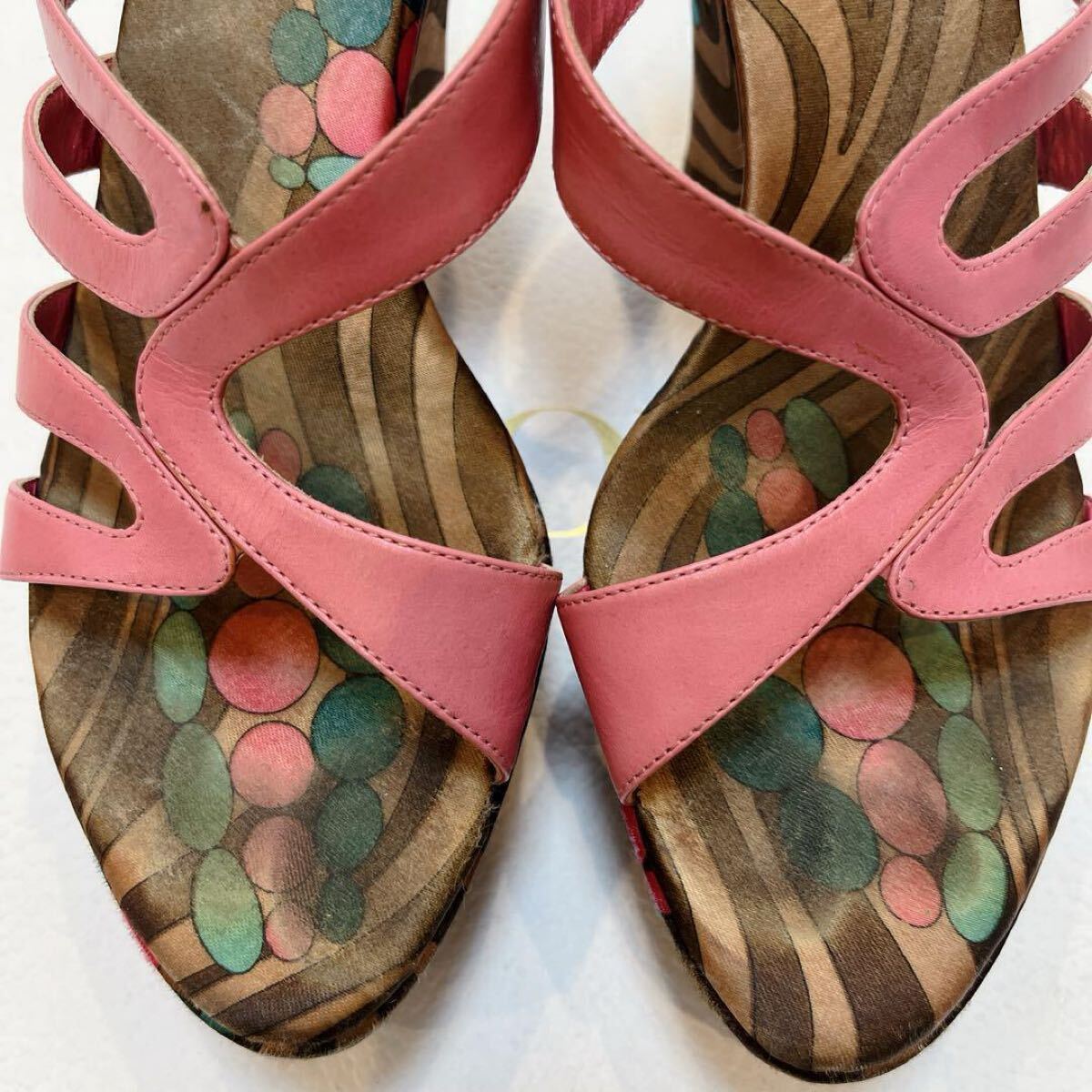 個性的で華やかなウェッジサンダルです。ピンクのレザーとアートのようなソールデザインが特徴的で、夏の足元を彩る一足。ヒール高もありながら安定感があり、デザイン性と履き心地を両立◎カジュアルスタイルからリゾートまで幅広く活躍します。