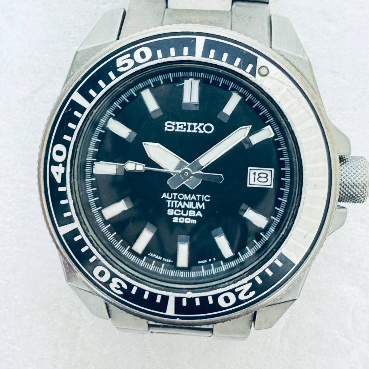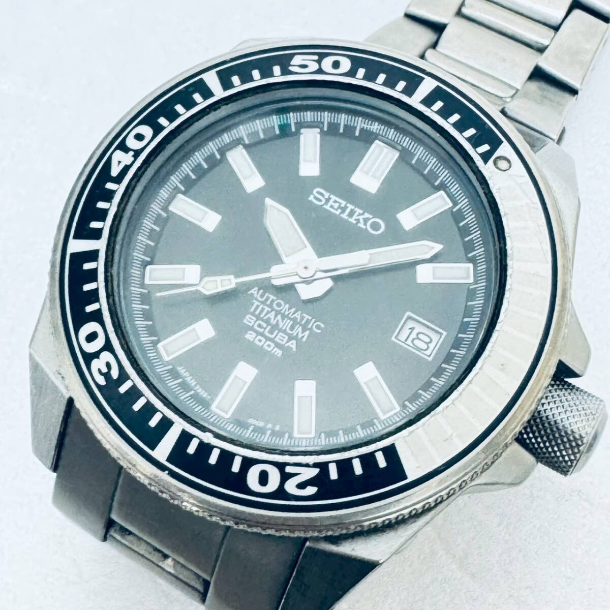 【YST274】1円~ SEIKO 7S25-00D0 ブラックサムライ 自動巻き TITANIUM SCUBA200 可動品 キズ有 チタニウム セイコー SN:460085 現状品 |