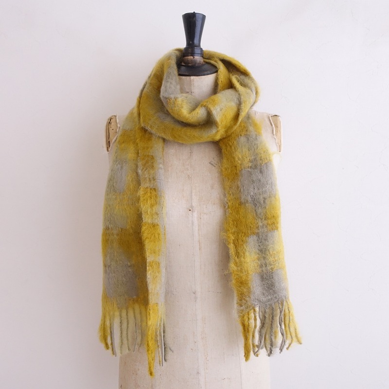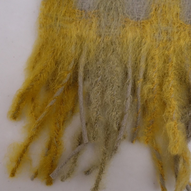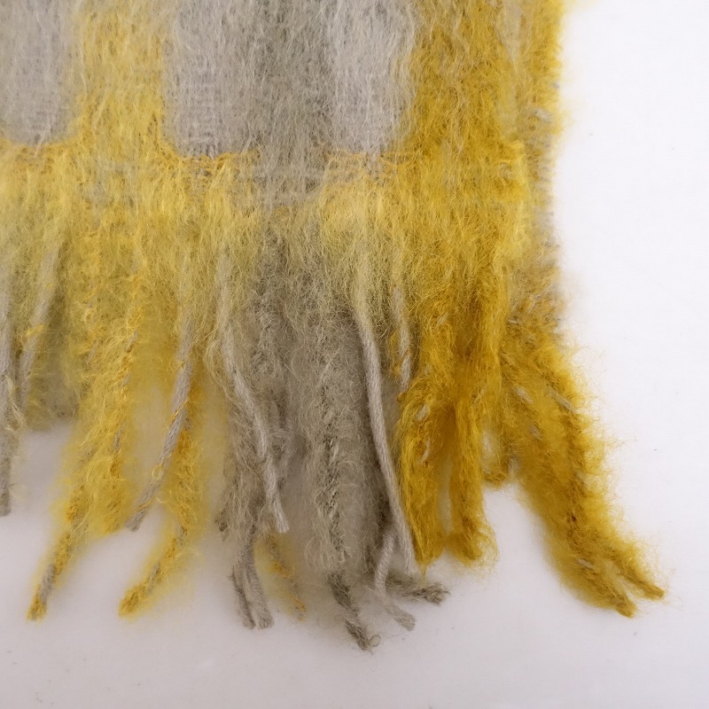 | 2023AW/MANTAS EZCARAYのチェック フリンジマフラーです。 カラーはほんのりベージュがかったライトグレー×イエローで、上質な天然繊維で編まれたウールマフラーです。 毛足の長いモヘアがふんわりやわらかく編み上げらたこちらのマフラーは、軽くて暖かく、上品な光沢感があります。 |