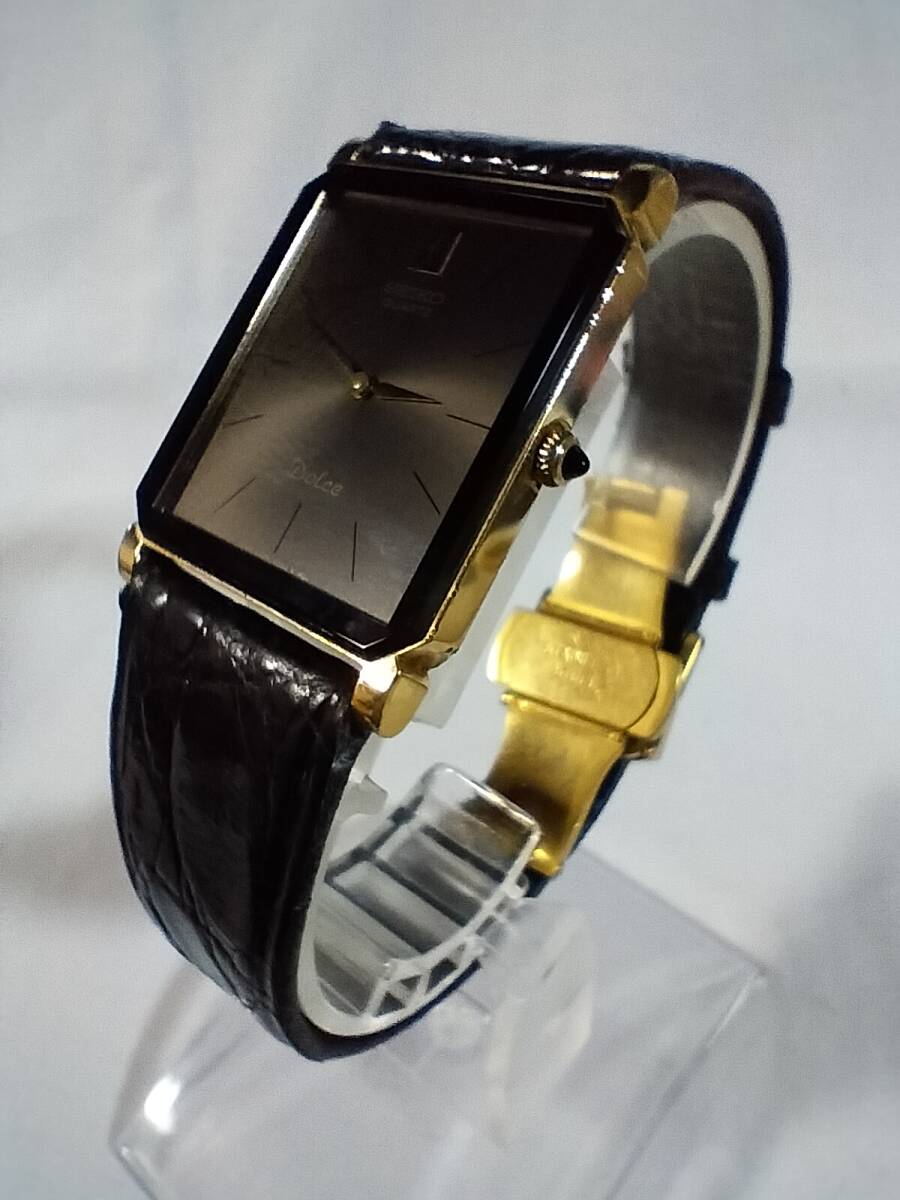稼働品 新品Dバックル 新品電池 SEIKOセイコードルチェ型7730-5040 材質METAL レクタンギュラー メンズ QZ 色コンビケースブラック系文字盤