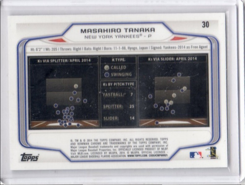 ★☆田中将大 カード Vol.37 2014BOWMAN CHROME #30 ルーキー☆★ | |