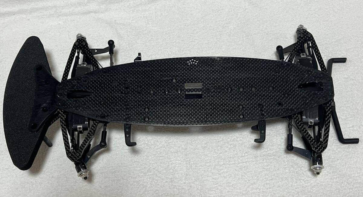 カーボン仕様のマシンで、丸みを帯びた葉っぱ型のシャーシが特徴的でし、オーソマティックの象徴とも言うべきダンパーも新設計となっています。