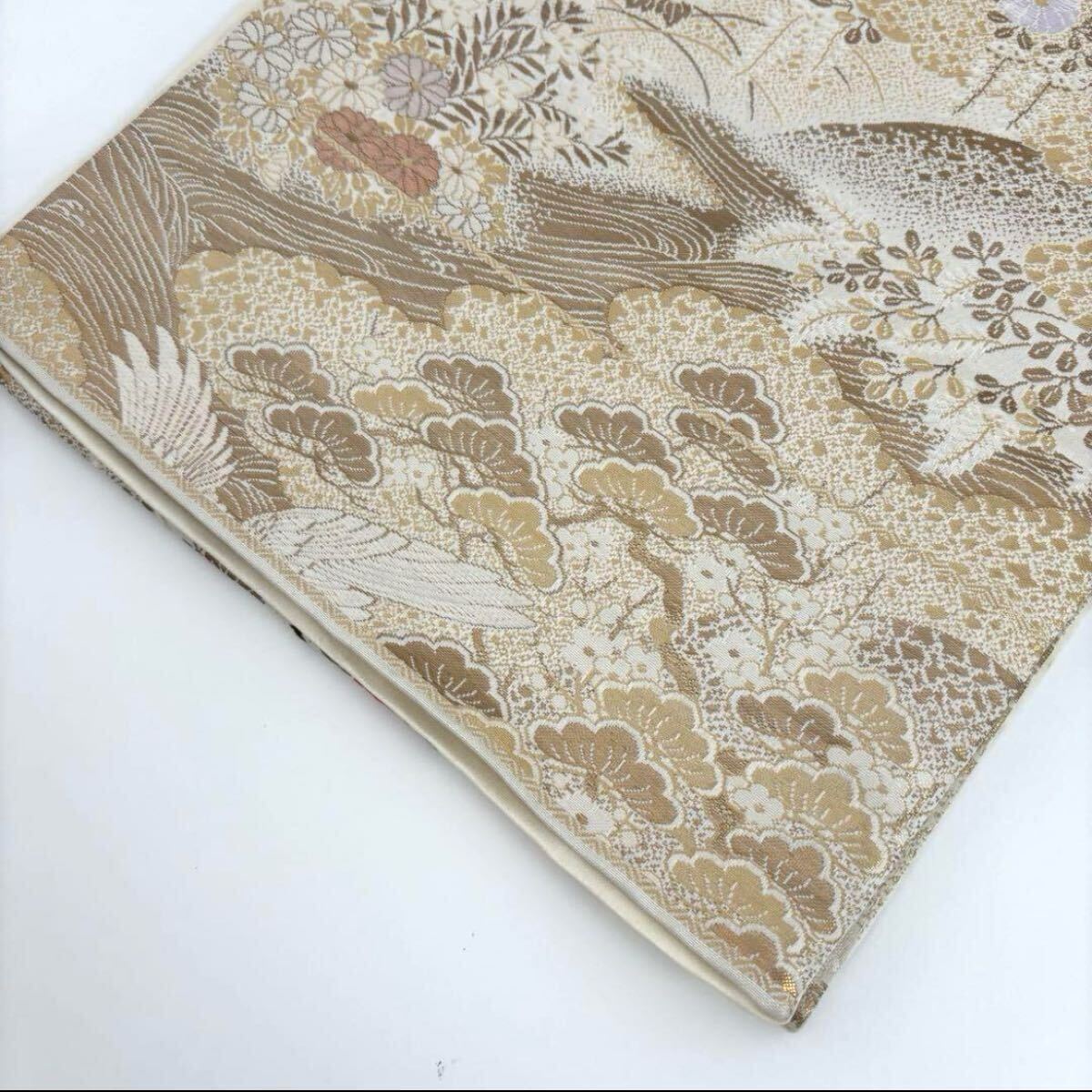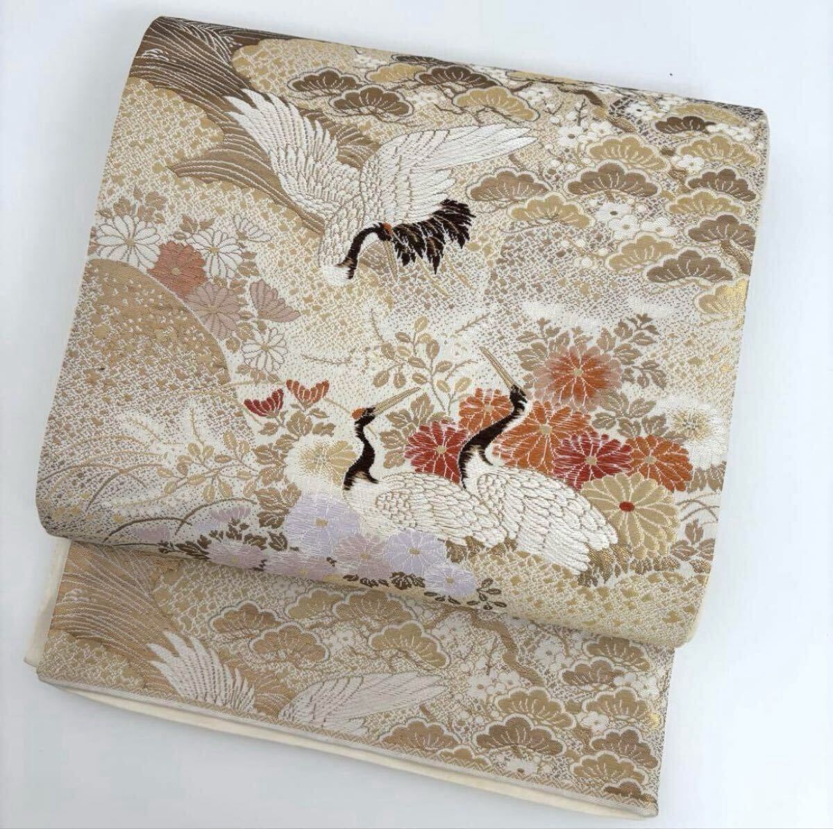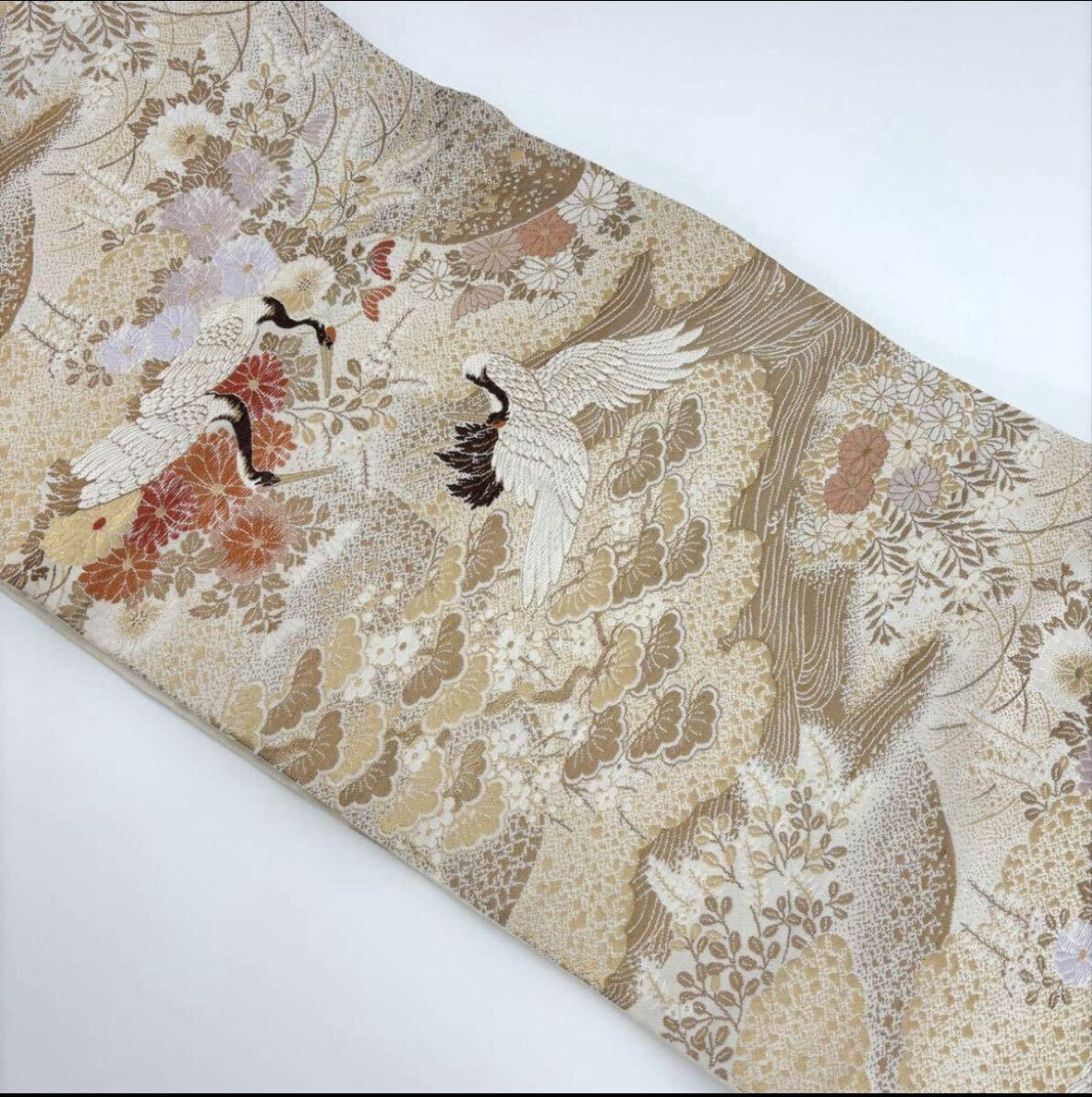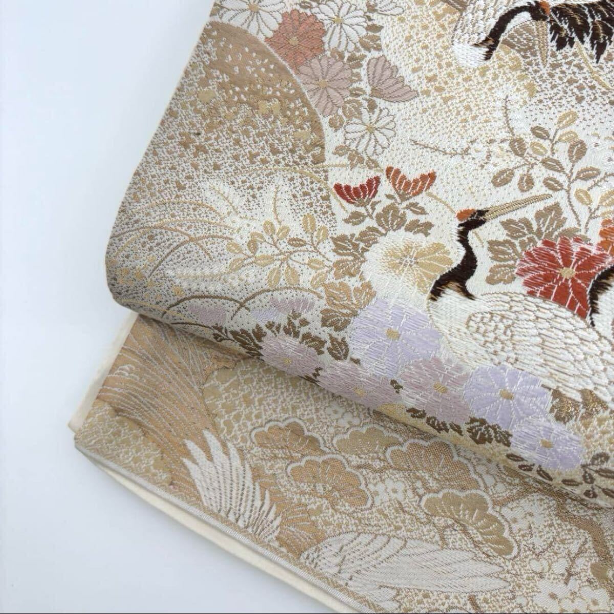 【楓】袋帯 正絹 九百錦 金糸 鶴に花 六通 KU-5863