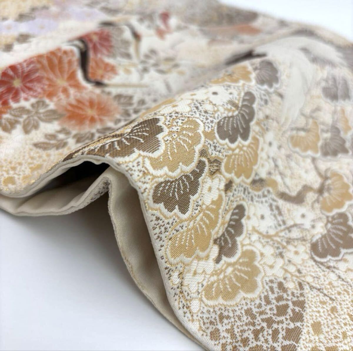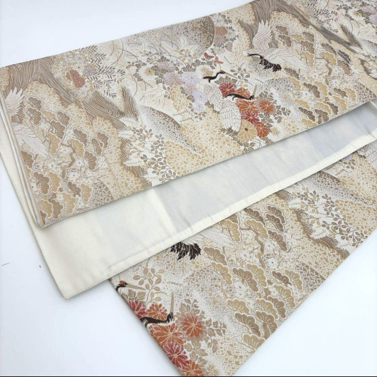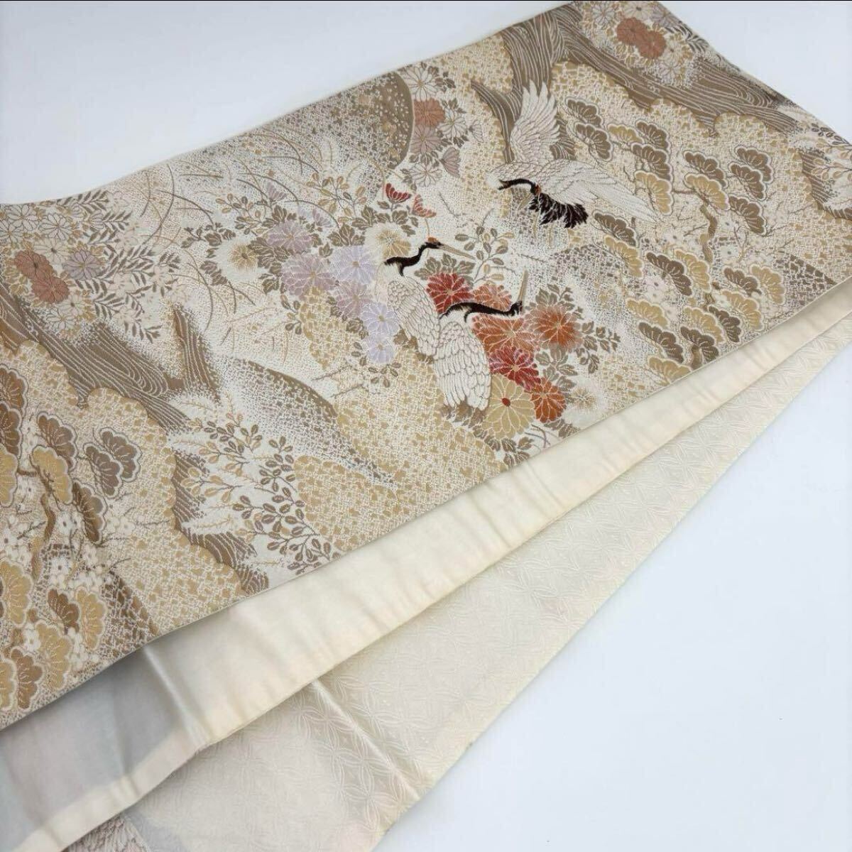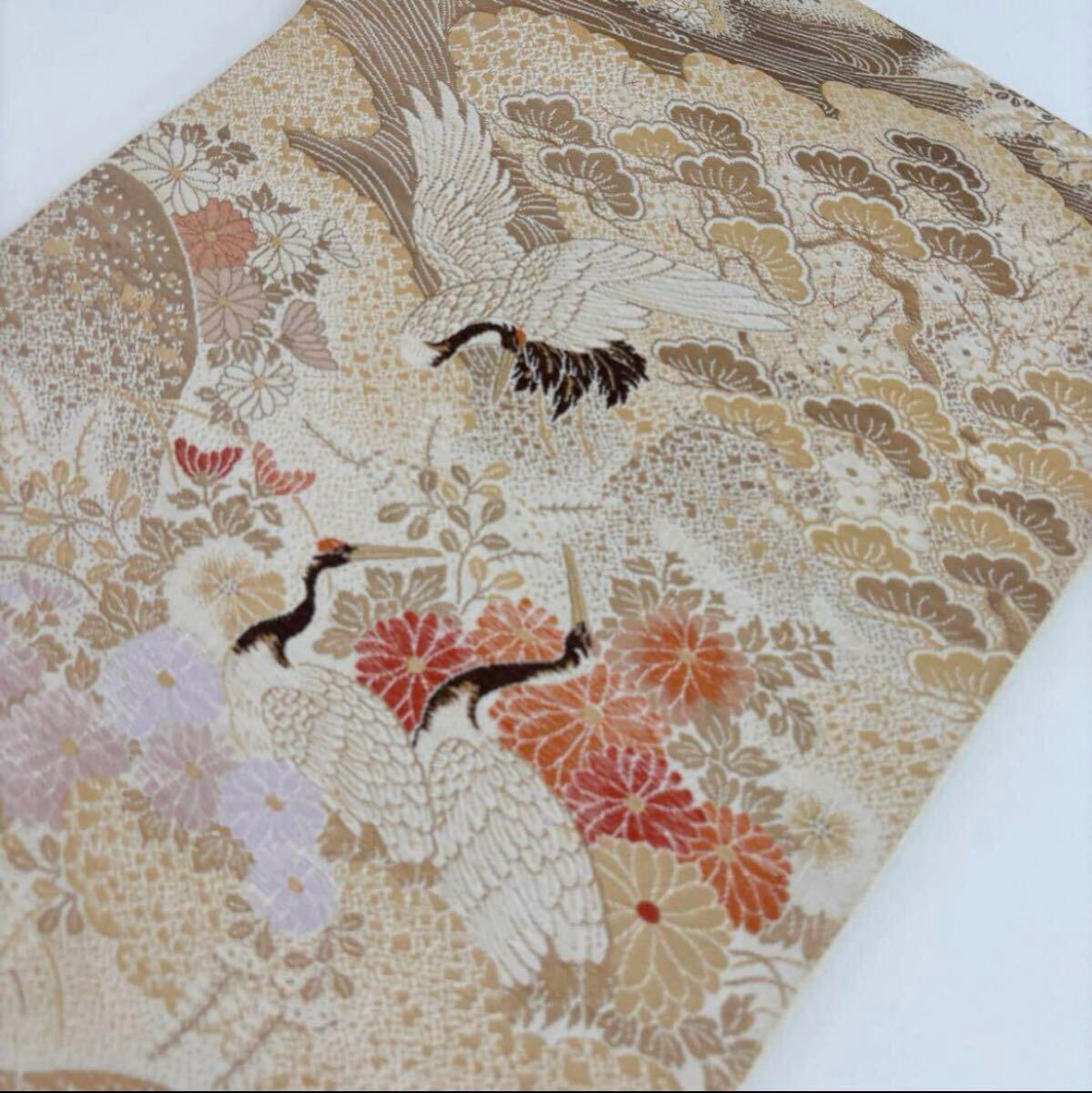 【楓】袋帯 正絹 九百錦 金糸 鶴に花 六通 KU-5863