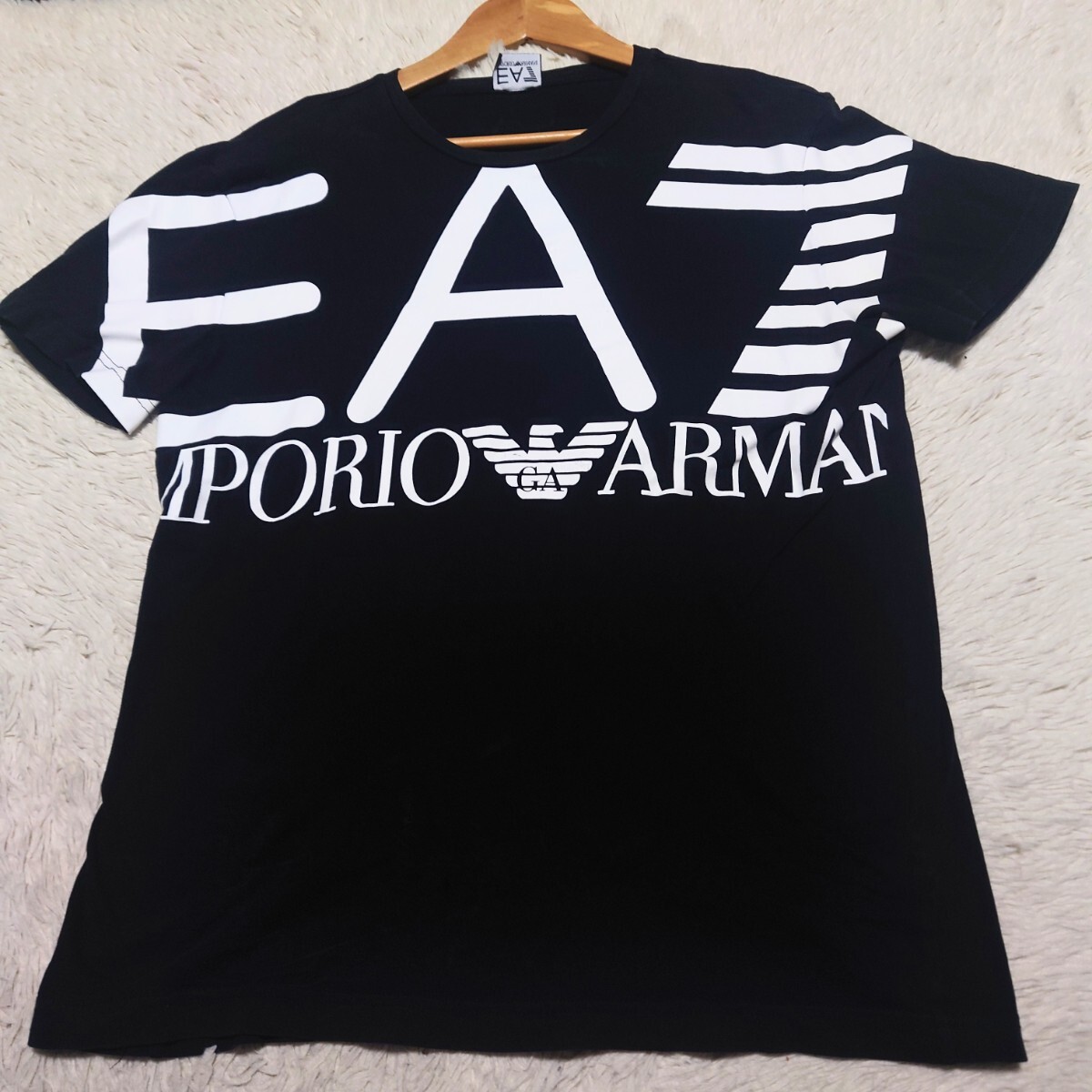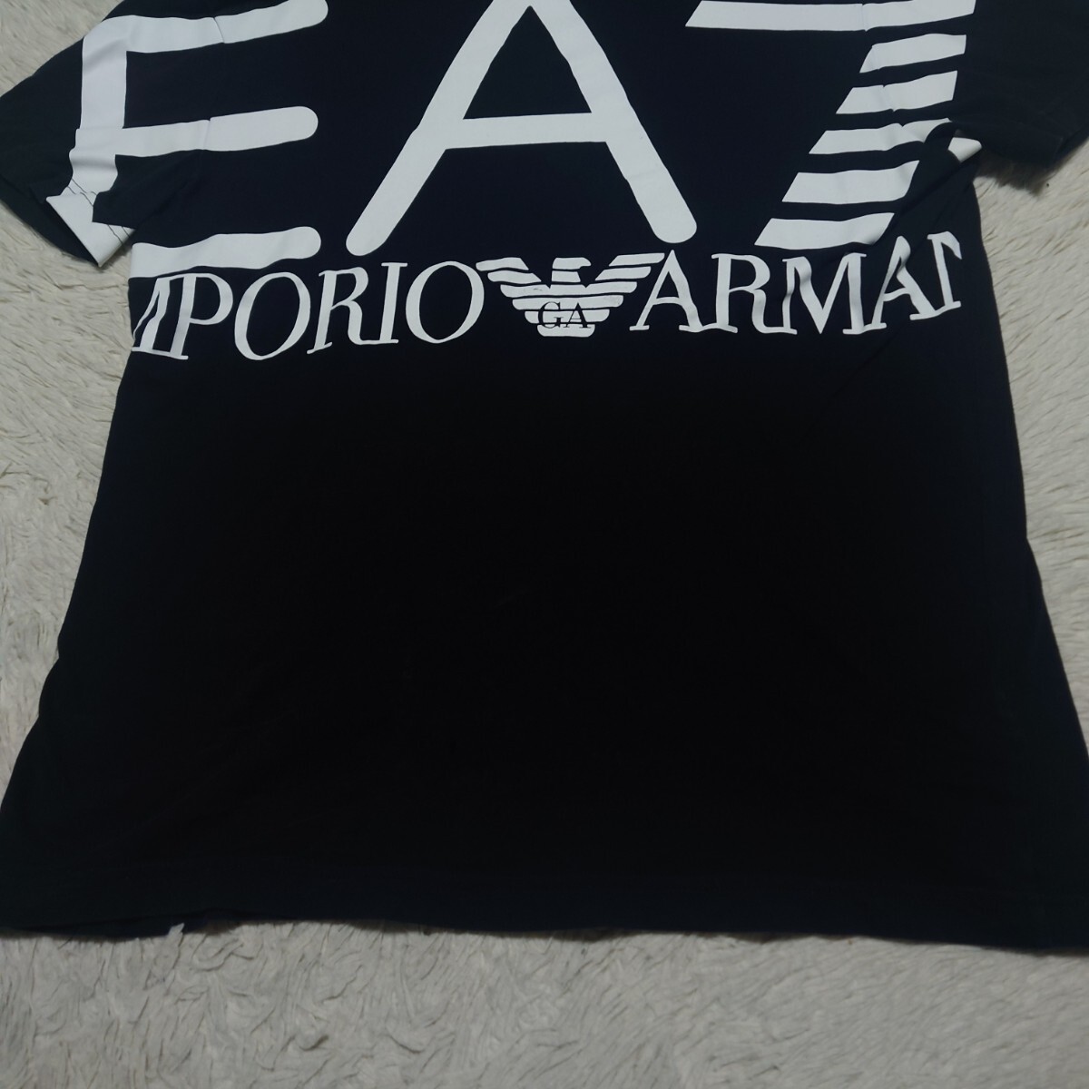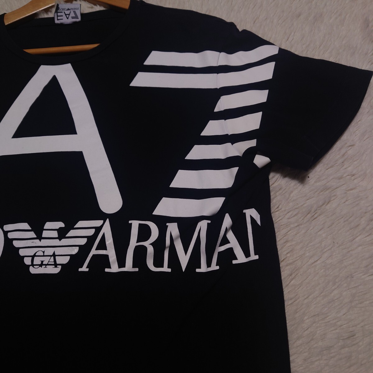 【1円〜】希少なLサイズ EMPORIO ARMANI エンポリオアルマーニ Tシャツ 超ビッグロゴ ブラック EA7 イーグルロゴ