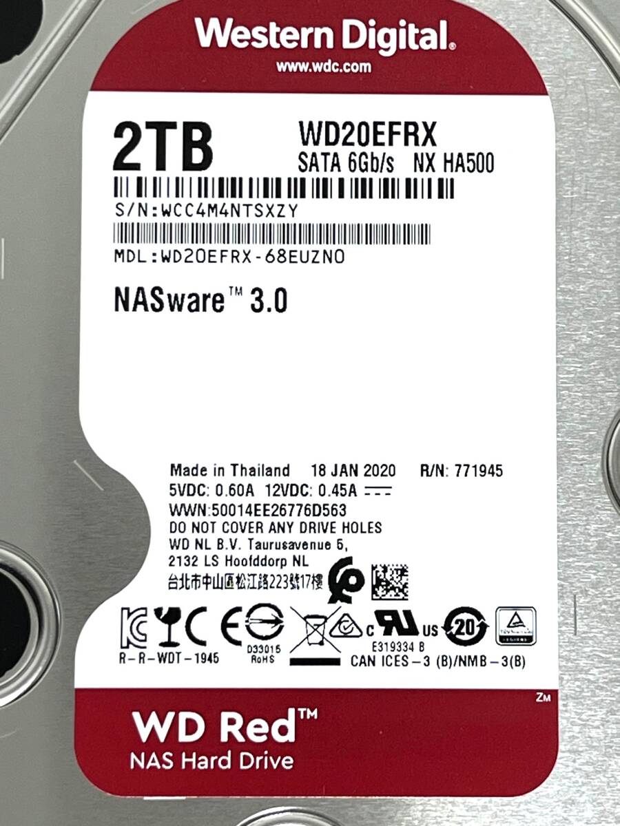 ★ 2TB ★ WD20EFRX / Western Digital Red 【使用時間:30h】新品同様 2020年製 WD 3.5インチ内蔵HDD AVコマンド対応 2000GB[管5ASX