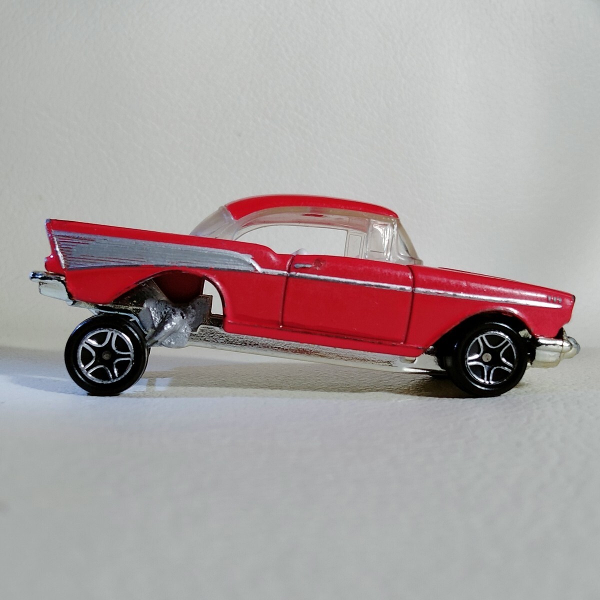 ・6839 おふざけ分解改造品レズニーマッチボックス1957年シボレーベルエア ホットロッド/ヒップアップ仕様 英国製