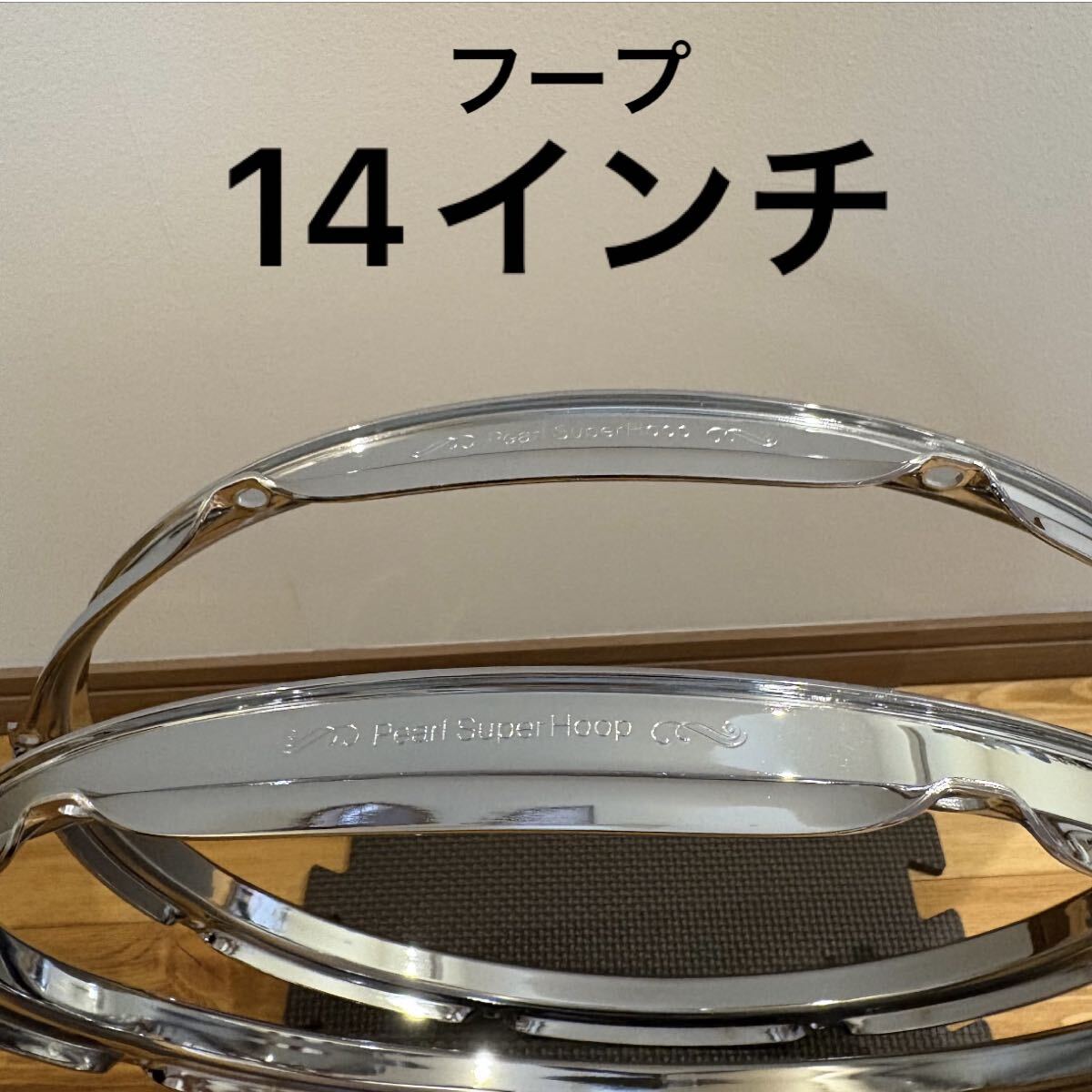 PEARL製スーパーフープⅡ。14"のスネアドラムやタムに適合する、8テンション仕様です。マスターキャストフープ(ダイキャストフープ)よりもオープンな音になり、チューニングも容易です。