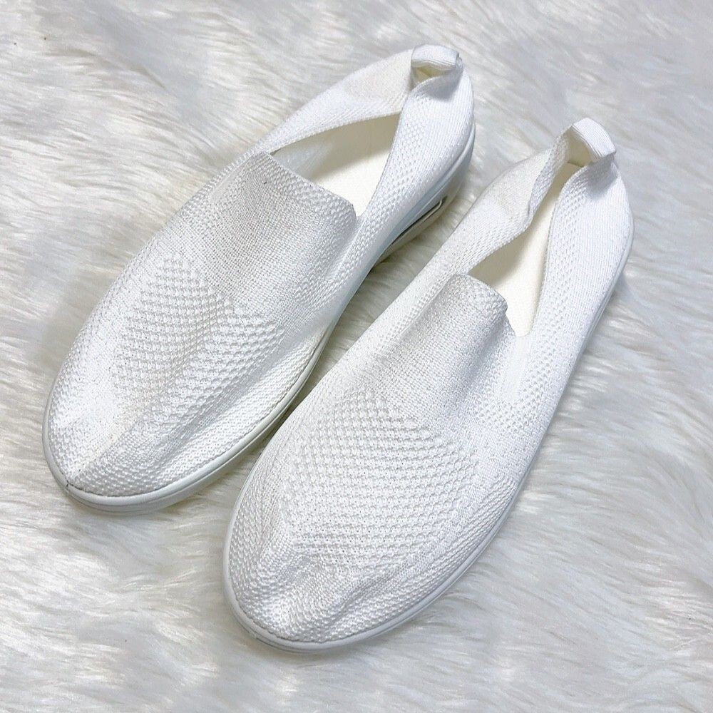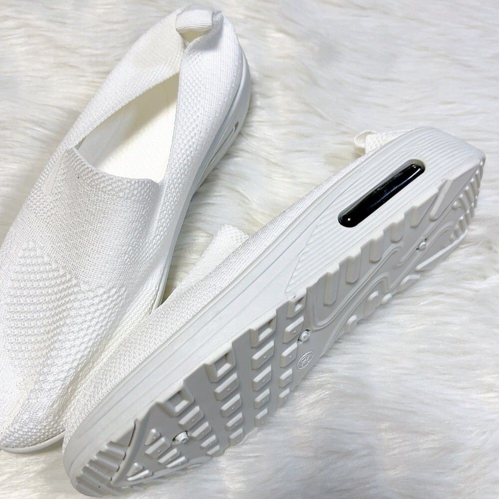 スニーカー 23.5cm ナースシューズ 白 厚底 スリッポン メッシュ 疲れない ホワイト シンプル カジュアル 通勤 通学 ウォーキング 通気性