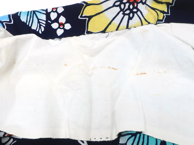 リサイクル商品のため、所々染色うつりとしみがございます。 肩当汚れがございますが着用可能なお品です。 肩当付でございます。 地色は紺 です。 1枚目の画像が近いお色かと思われます。 素材は綿です。 |